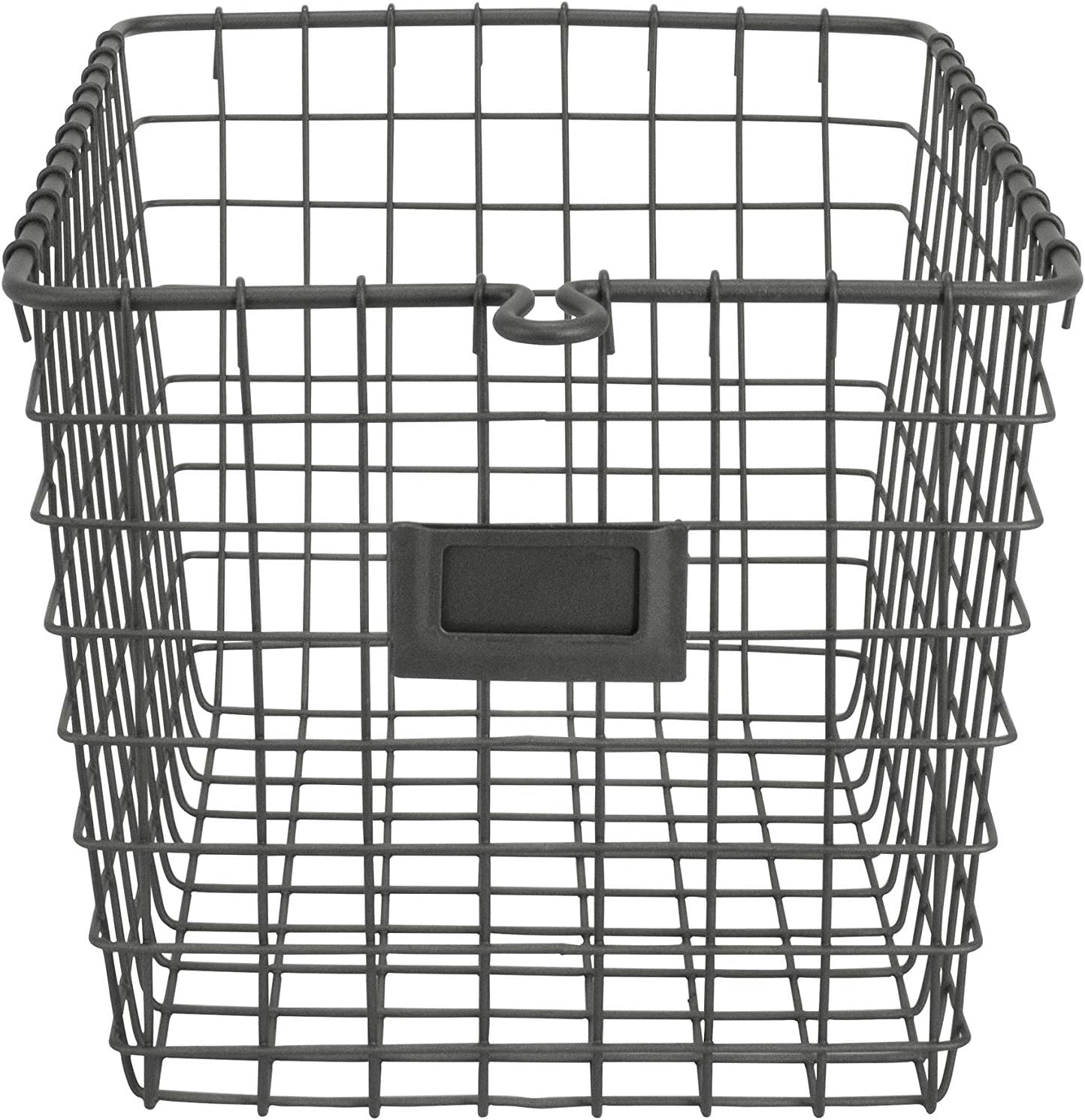 13″x9.75″x8″ Industrial Gray Wire Storage Basket with Looped Handle and Label Plate — Pantry, Bath, Closet