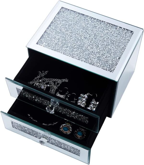 - A genuinely dual-purpose vanity piece — Closed, it’s a mirrored accent piece that reflects light and adds depth to a dresser or bathroom counter. Open, it’s a practical, accessible jewelry and cosmetics organizer. Most storage pieces only serve one purpose — this one earns its spot both ways.