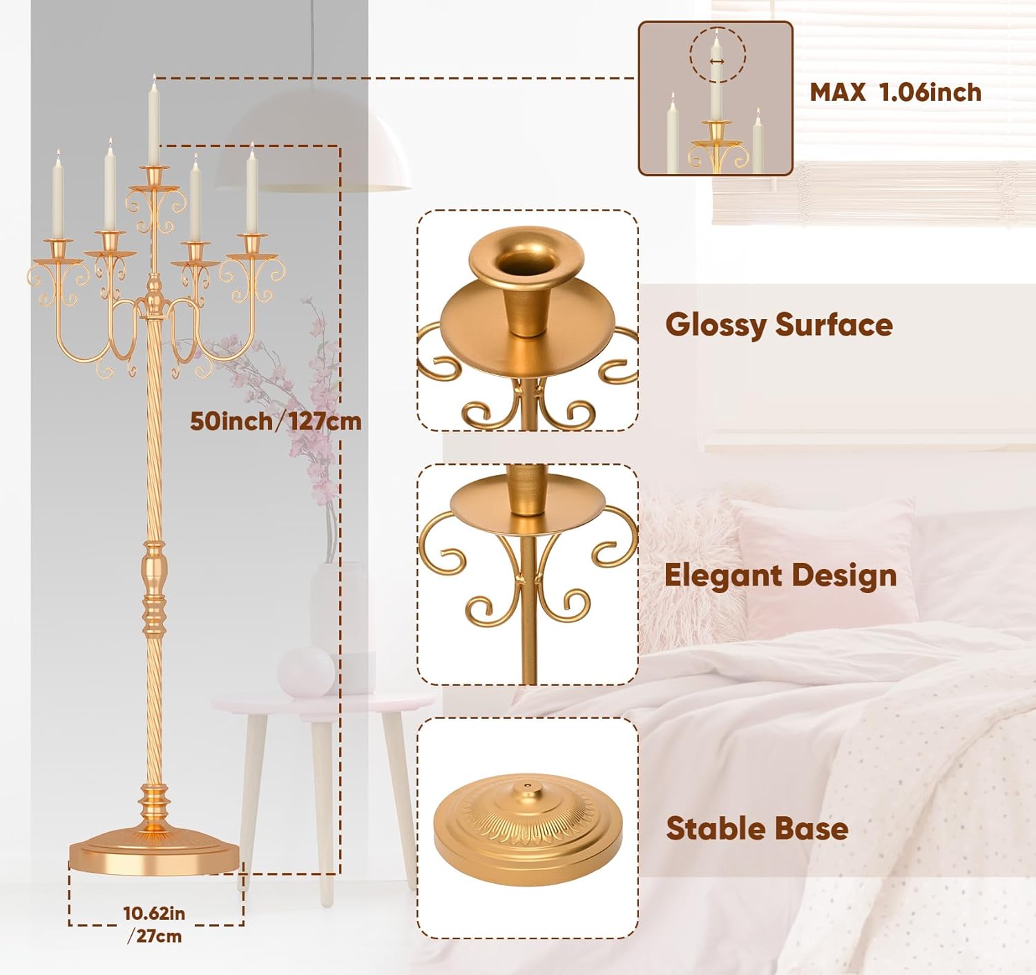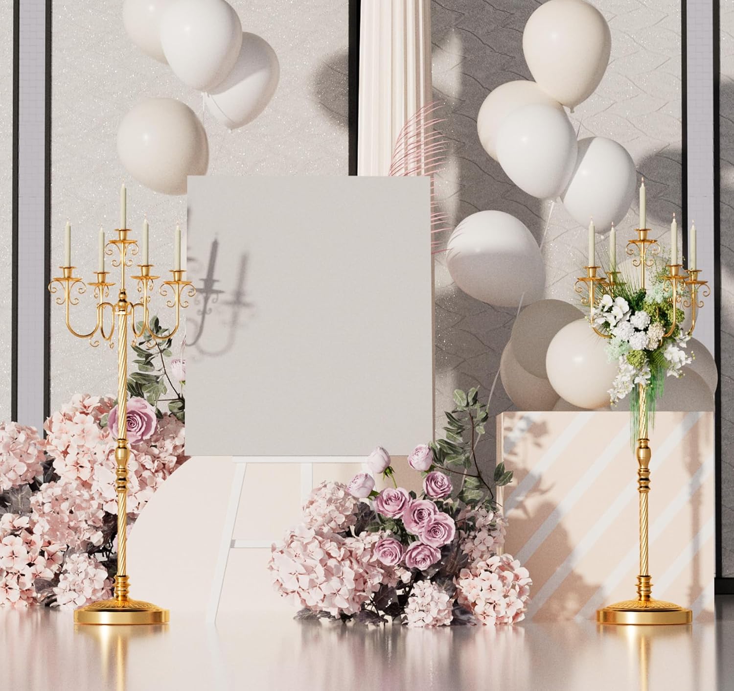 2 Pack 50 Inch Gold Wedding Candelabra Tall 5 Arm Holder