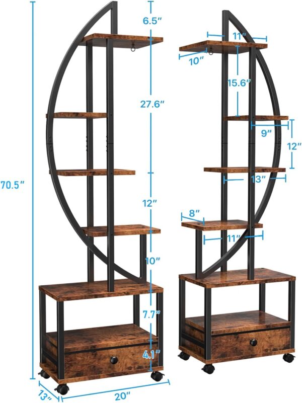 - Multi-functional use as a plant stand or display rack for décor, books, or collectibles in various spaces.