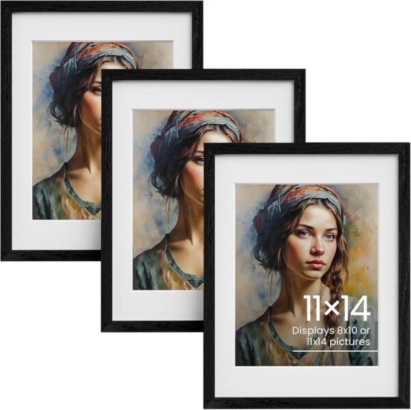 - Two display sizes built into one frame — Keep the included mat in to display an 8×10 photo with a clean white border, or remove it entirely to show a full 11×14 print edge to edge. The same frame adapts to either format without any modification — which means it works for both standard photo prints and larger art prints without buying a separate frame for each.