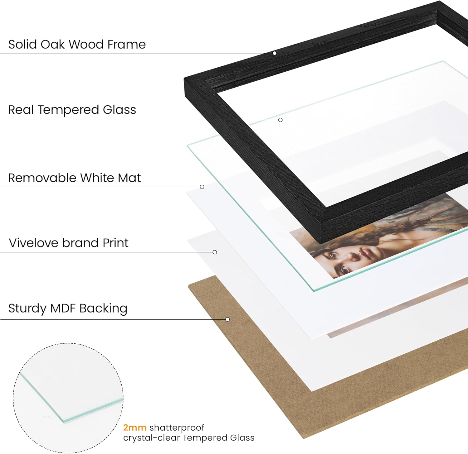 - 2.0mm tempered glass that protects without distorting — The high-definition tempered glass front is lightweight, scratch-resistant, and polished at the edges for safety. It keeps colors accurate and detail sharp from any viewing angle — and unlike acrylic, it won’t yellow or haze over time with UV exposure.