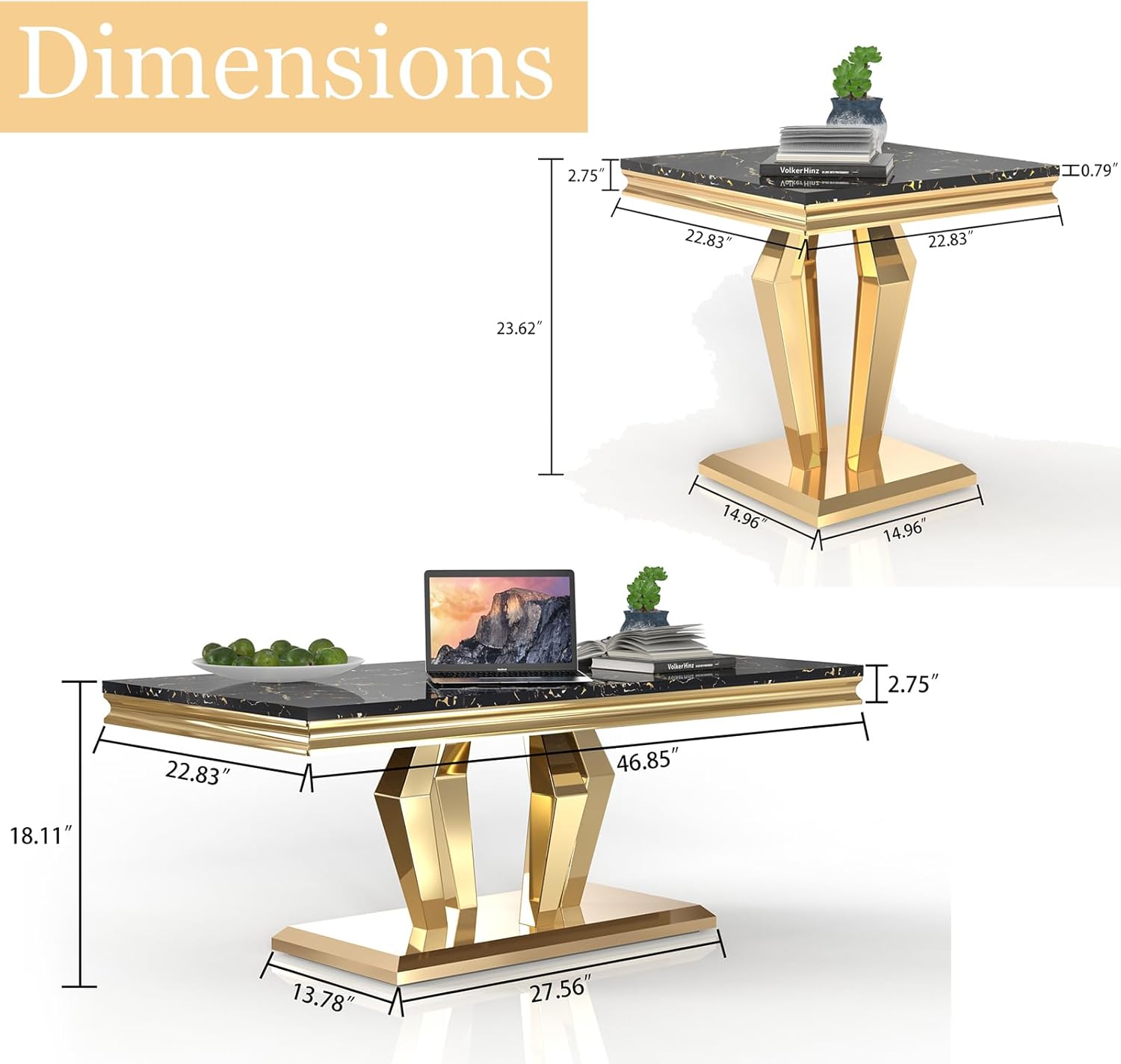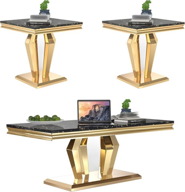 Be the first to review “3 Piece Coffee Table Set Black Gold Marble Living Room Tables”