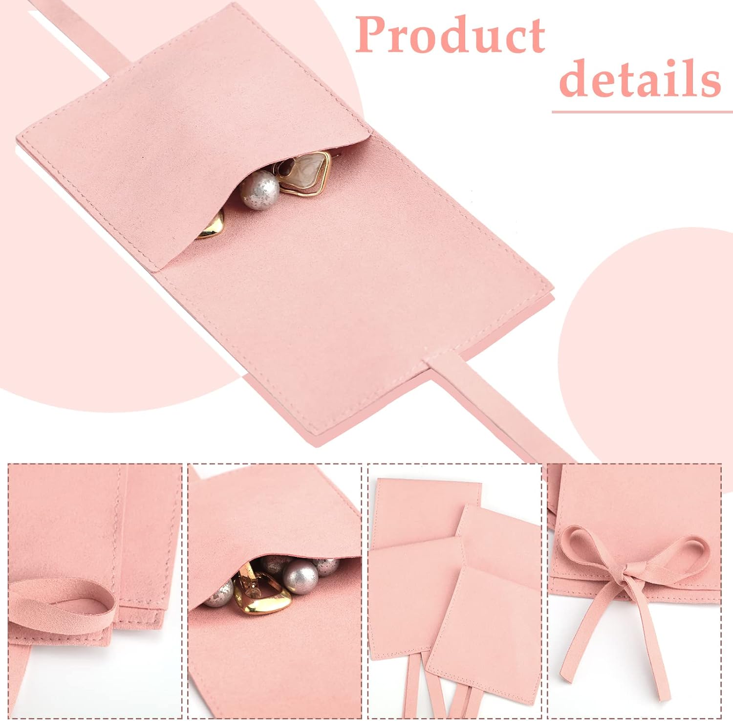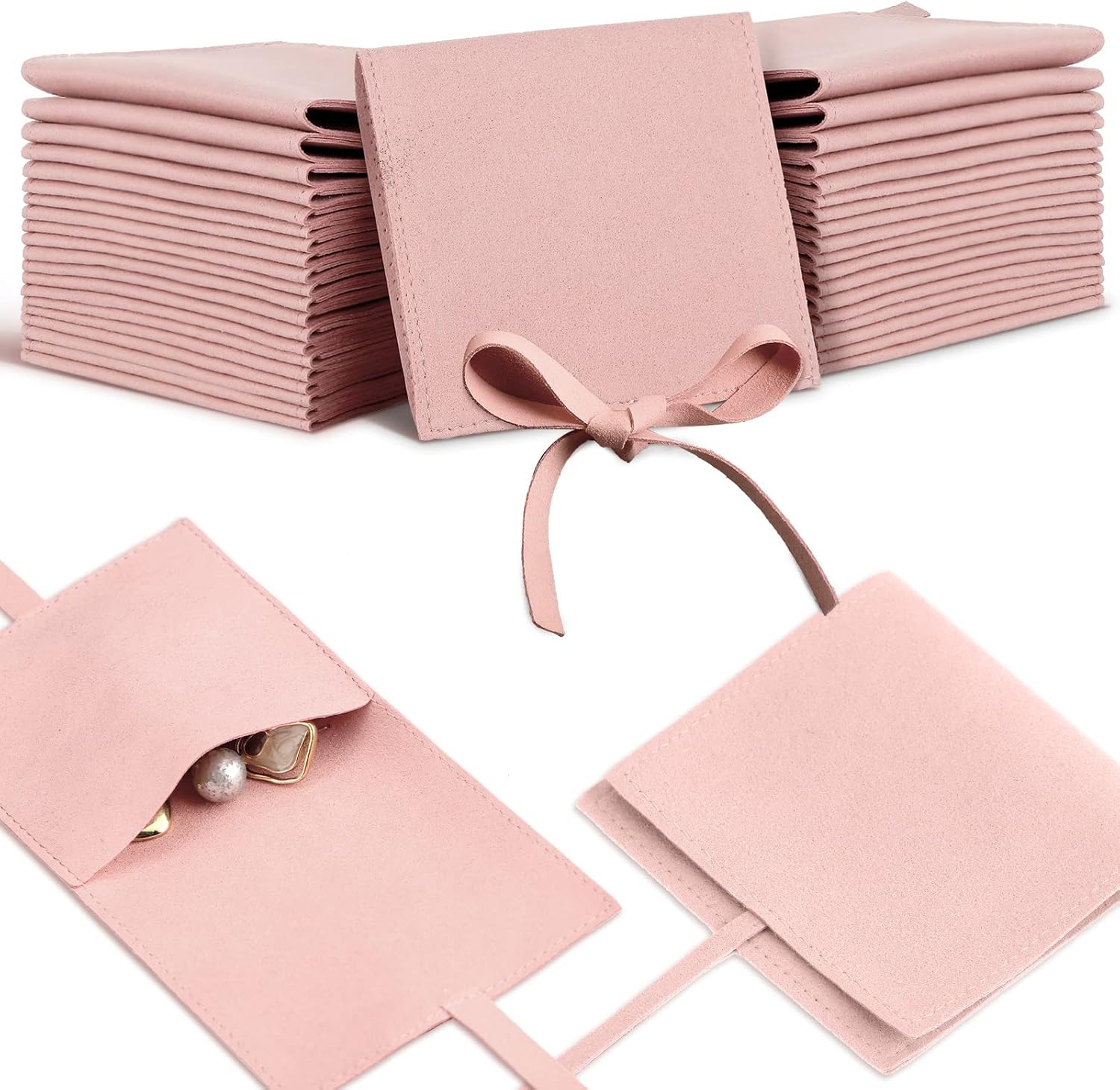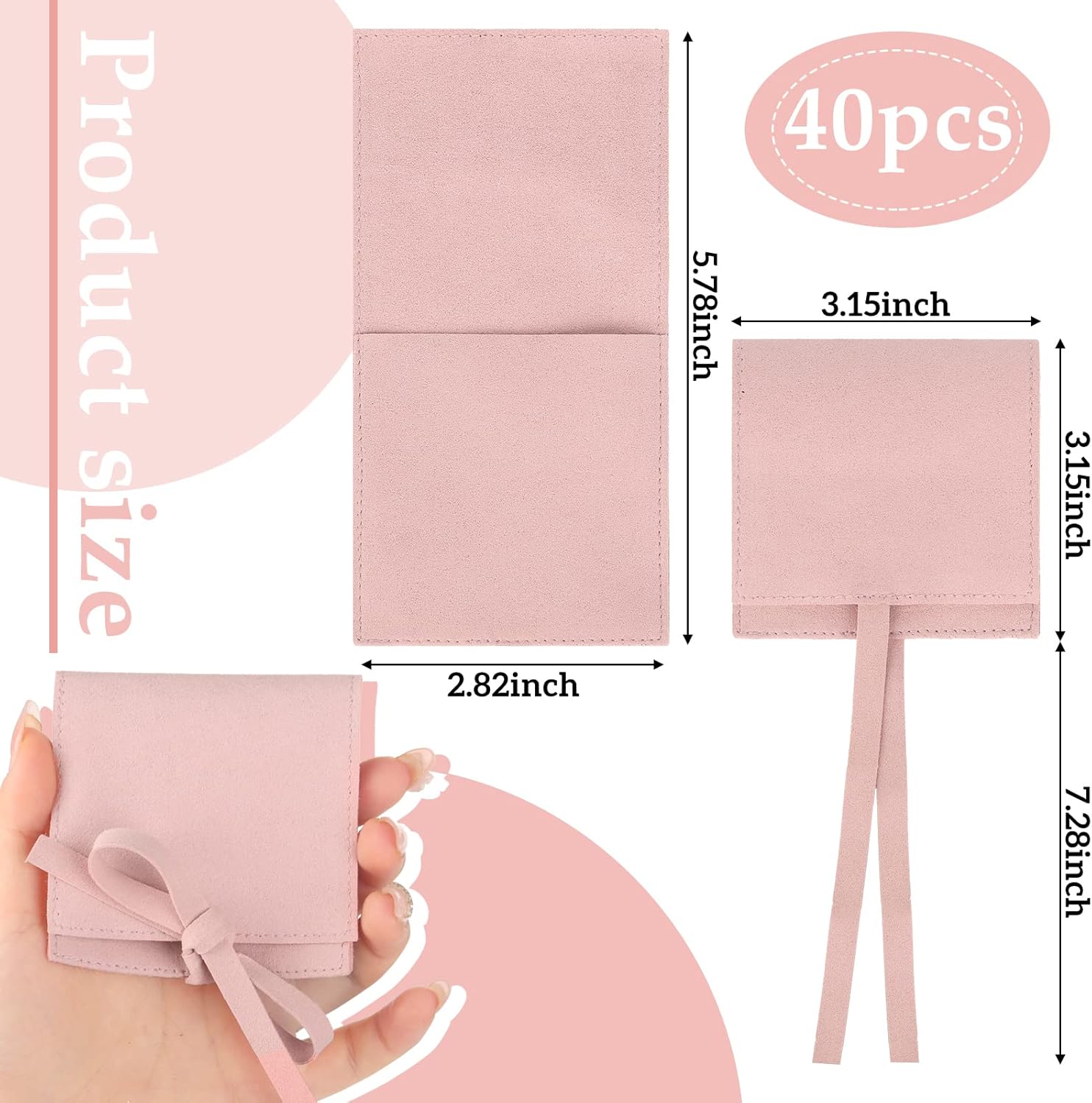 40-Pack 3.15″ Microfiber Jewelry Pouches — Envelope Style with Bow Tie String and Built-In Divider