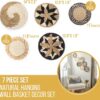 7-Piece Handcrafted Seagrass Wall Basket Set — 4 Flat Baskets and 3 Bowls, Ready to Hang with Nails Included