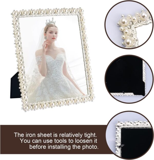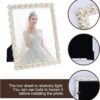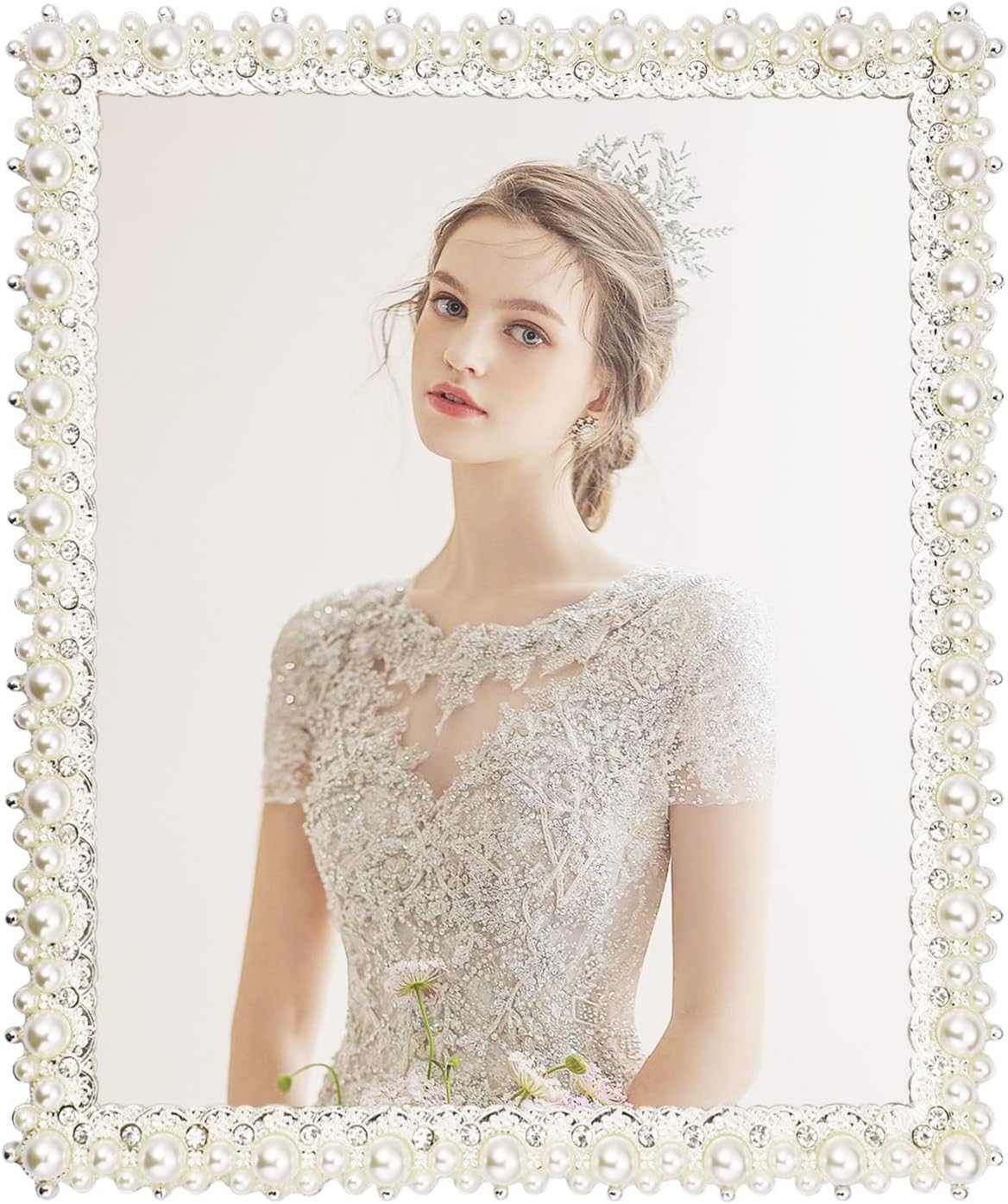 - Handcrafted with real pearls and crystal embellishment — not printed or simulated — Every pearl is individually set around the lace-pattern border by experienced craftspeople, giving this frame a tactile, dimensional quality that mass-produced frames simply can’t replicate. The combination of neatly arranged pearls and sparkling artificial diamonds creates a glittering effect that photographs beautifully and looks even better in person.