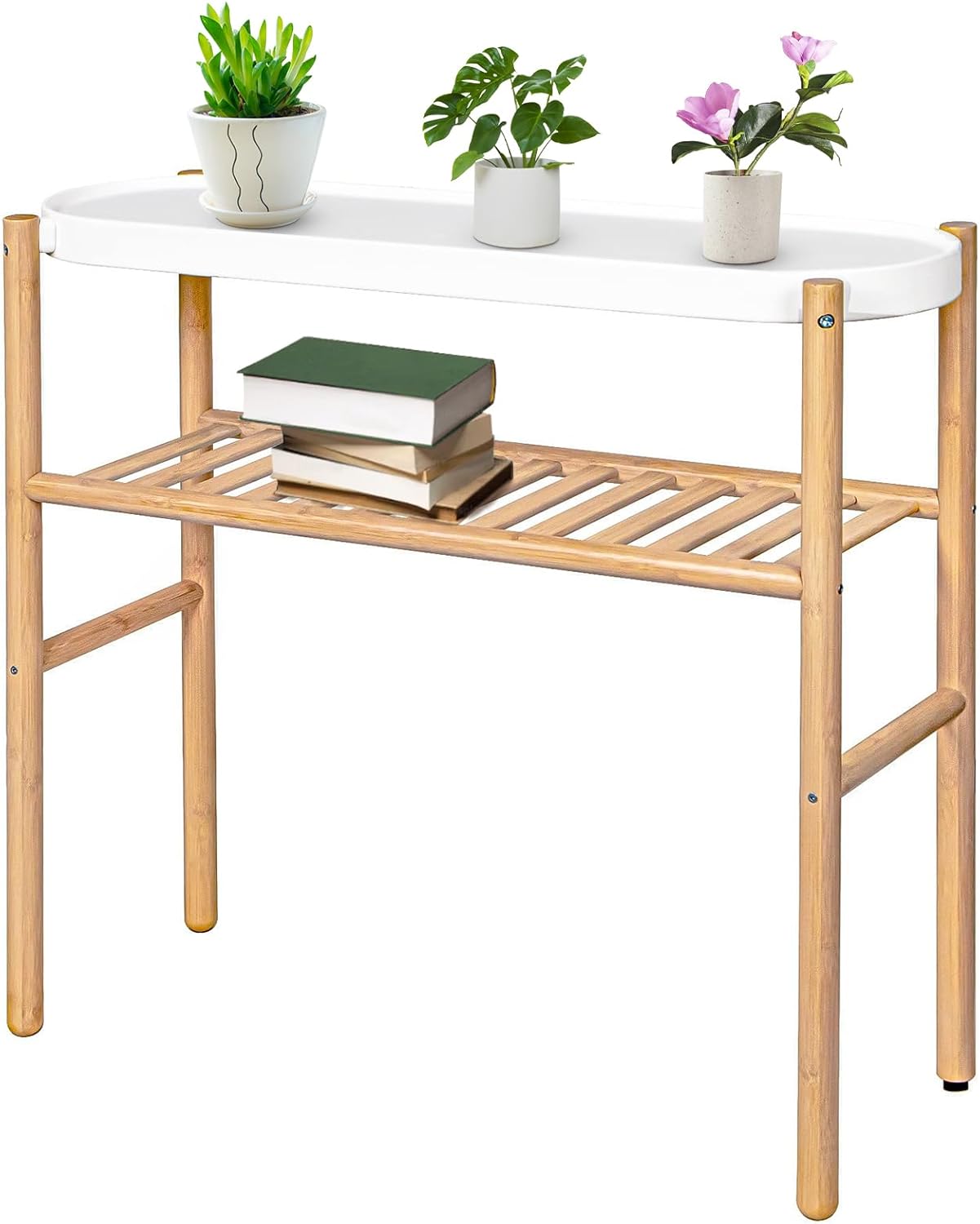 Bamboo Plant Stand 2 Tier Indoor Shelf Multi Pot Display Rack