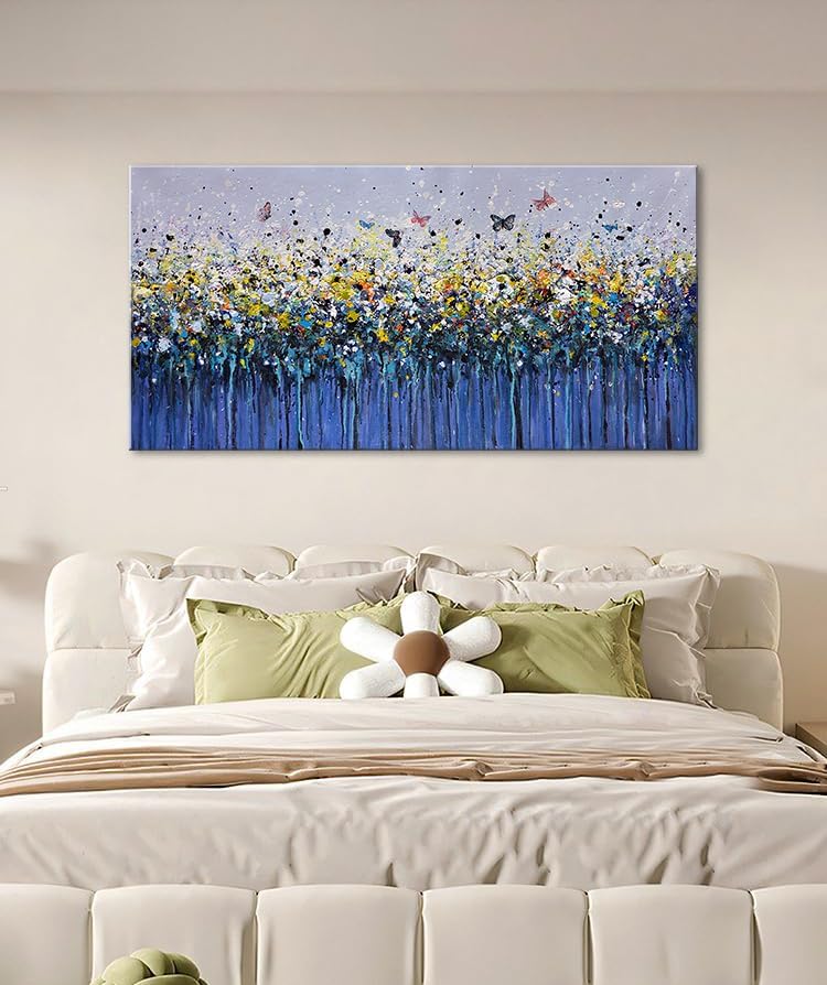 - Hand-painted canvas artwork with a framed design, ready to hang for easy installation.
