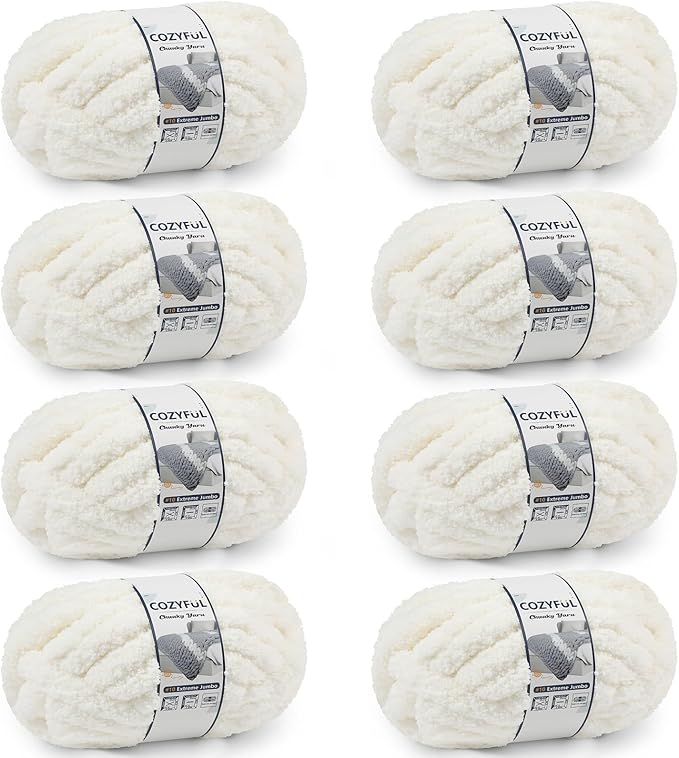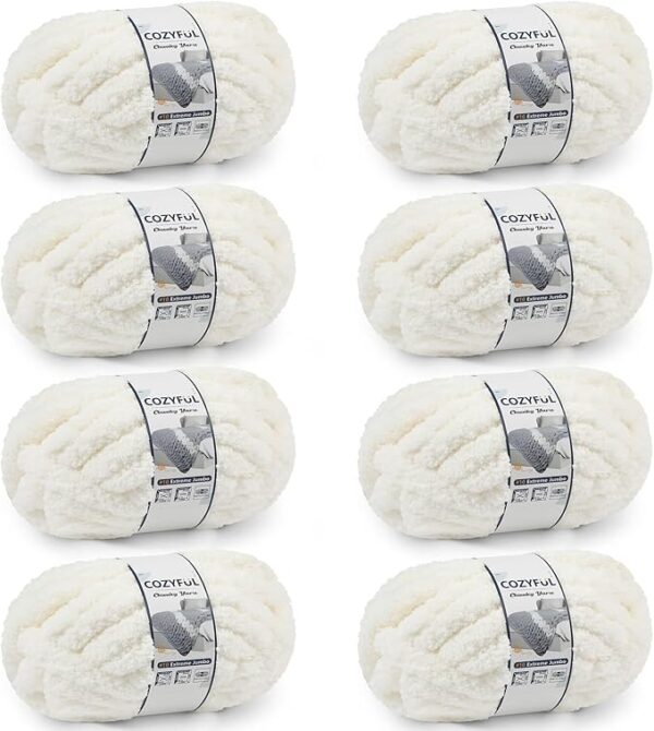 Chunky Yarn #10 – 8 Skeins Jumbo Chenille, Super Bulky Cream Yarn for Hand Knitting & Crocheting