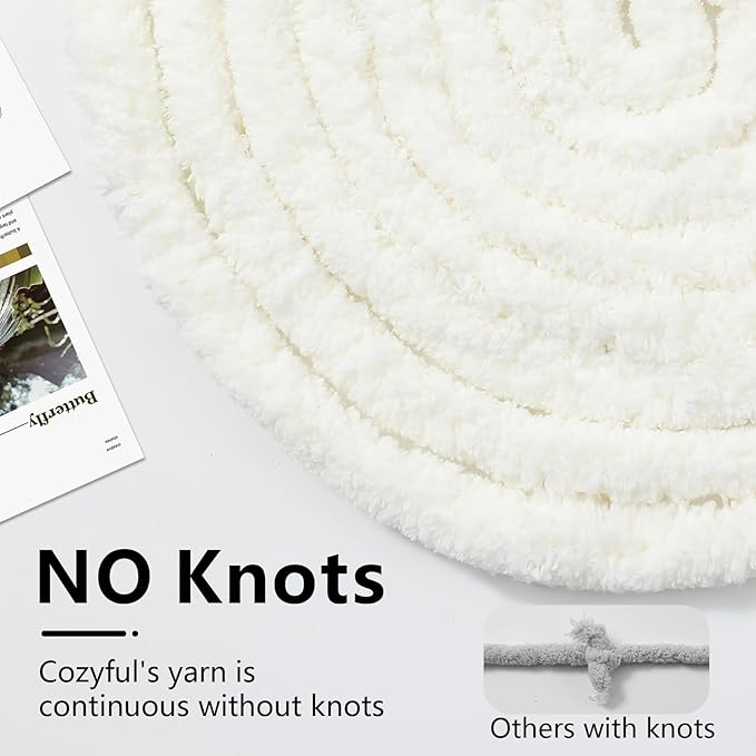 • Soft & Fluffy: Cozyful jumbo chenille yarn is incredibly fluffy and as soft as a cloud. When you lie on products made from our chunky blanket yarn, it feels like you are surrounded by thick clouds, providing warmth and comfort. The plush structure of hand knitting yarn traps more air, making it much warmer and cozier.