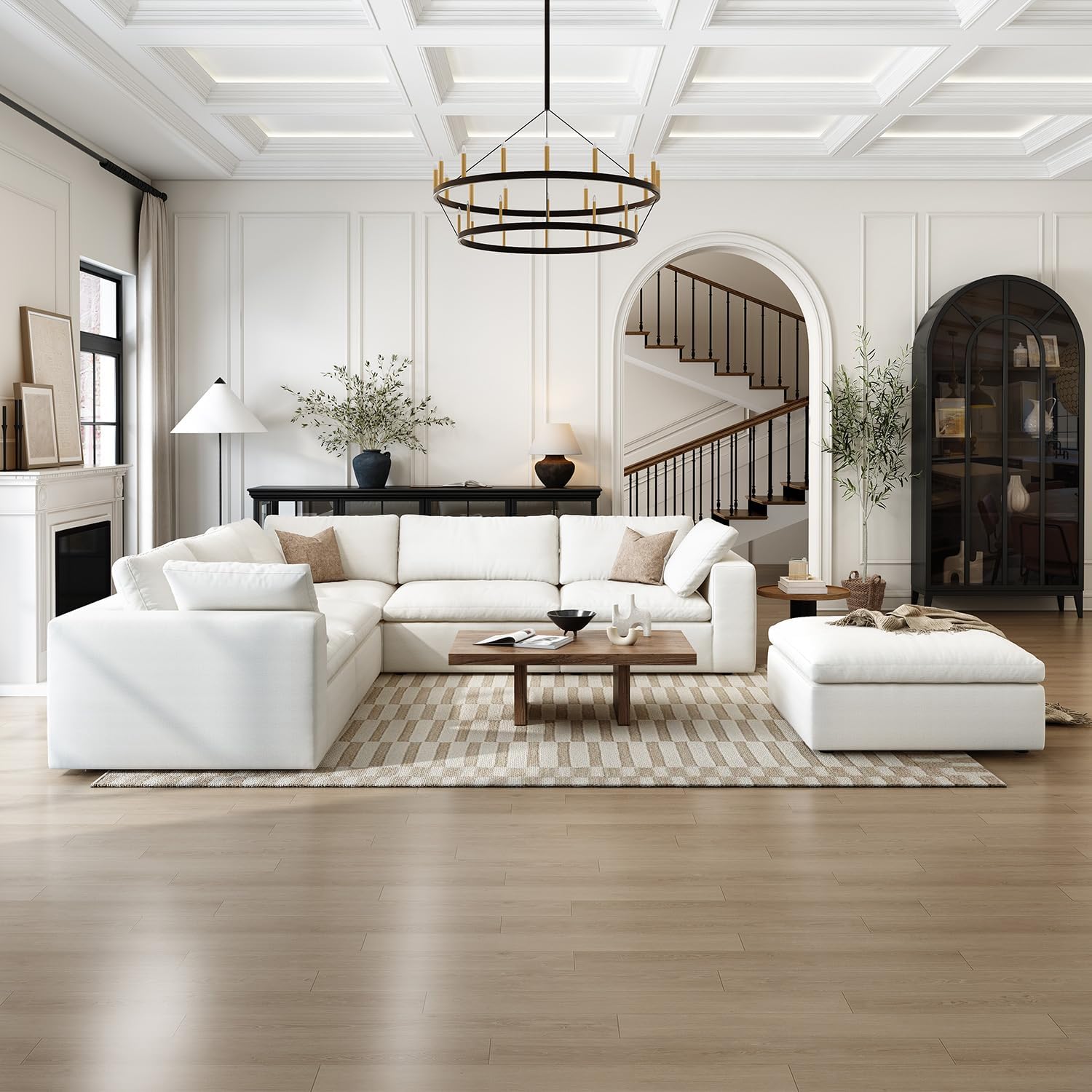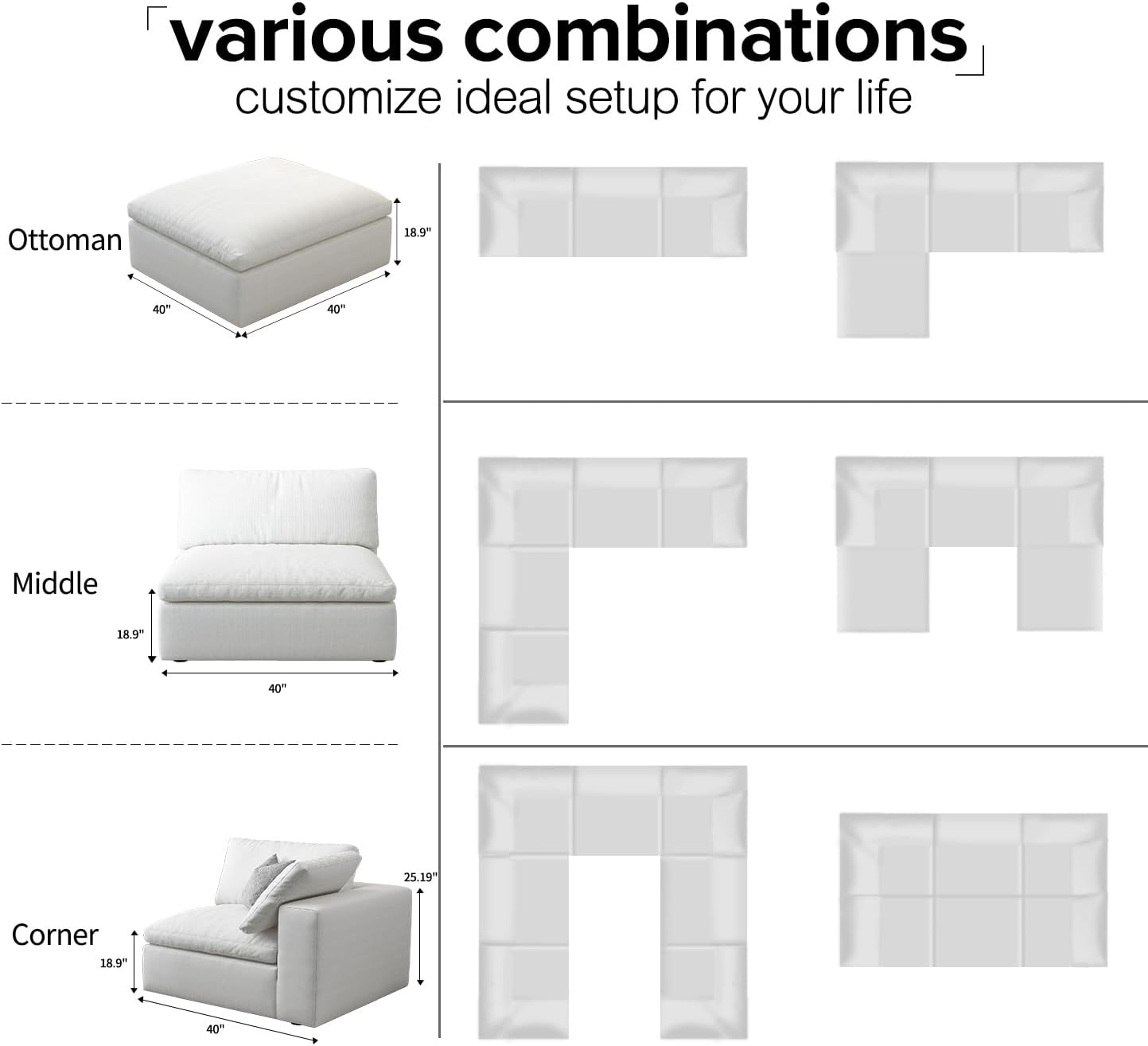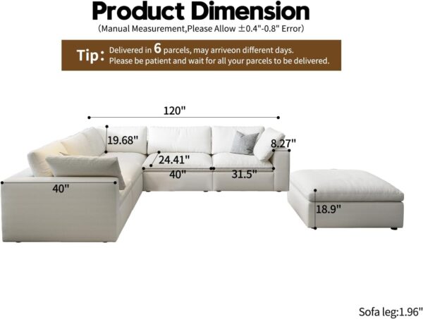 - Includes multiple seating sections and ottoman, offering spacious seating and easy assembly with components that expand after unpacking.