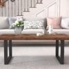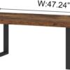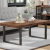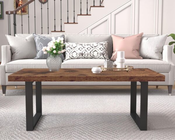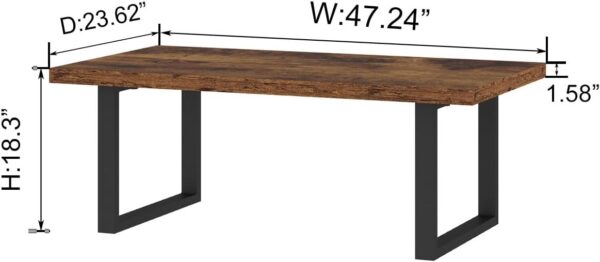 - The rustic brown finish and minimalist industrial design give this rectangular table a modern, stylish presence that stands out in any living space.