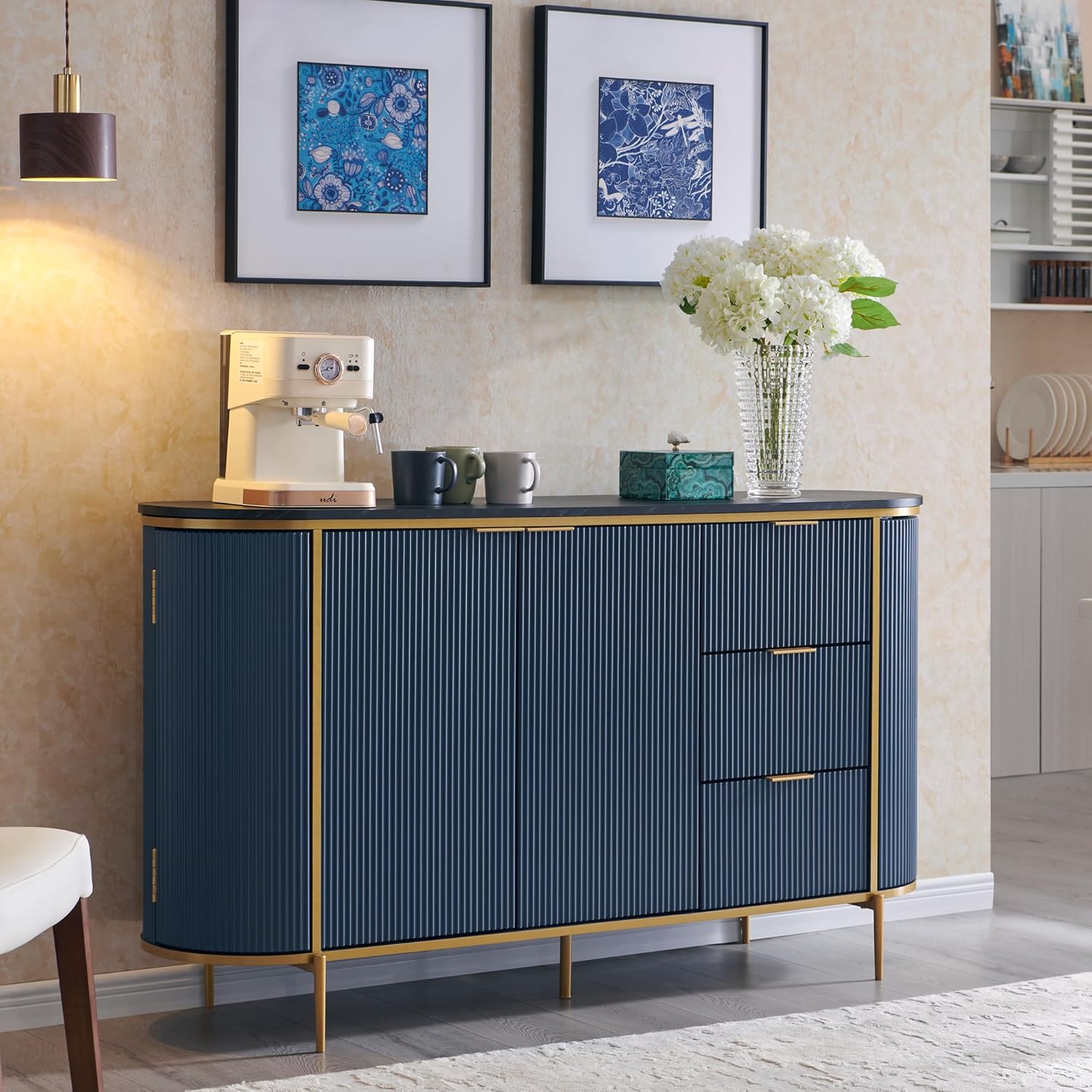 - Features a modern fluted design with clean lines, adding elegance and sophistication to any living or dining space.