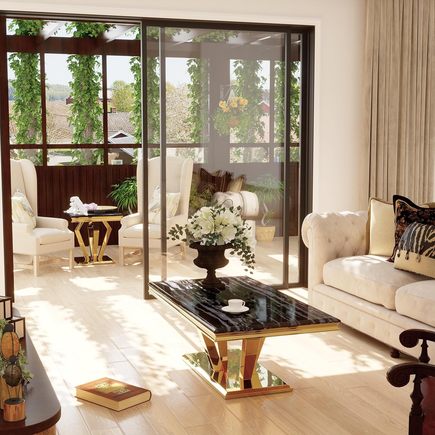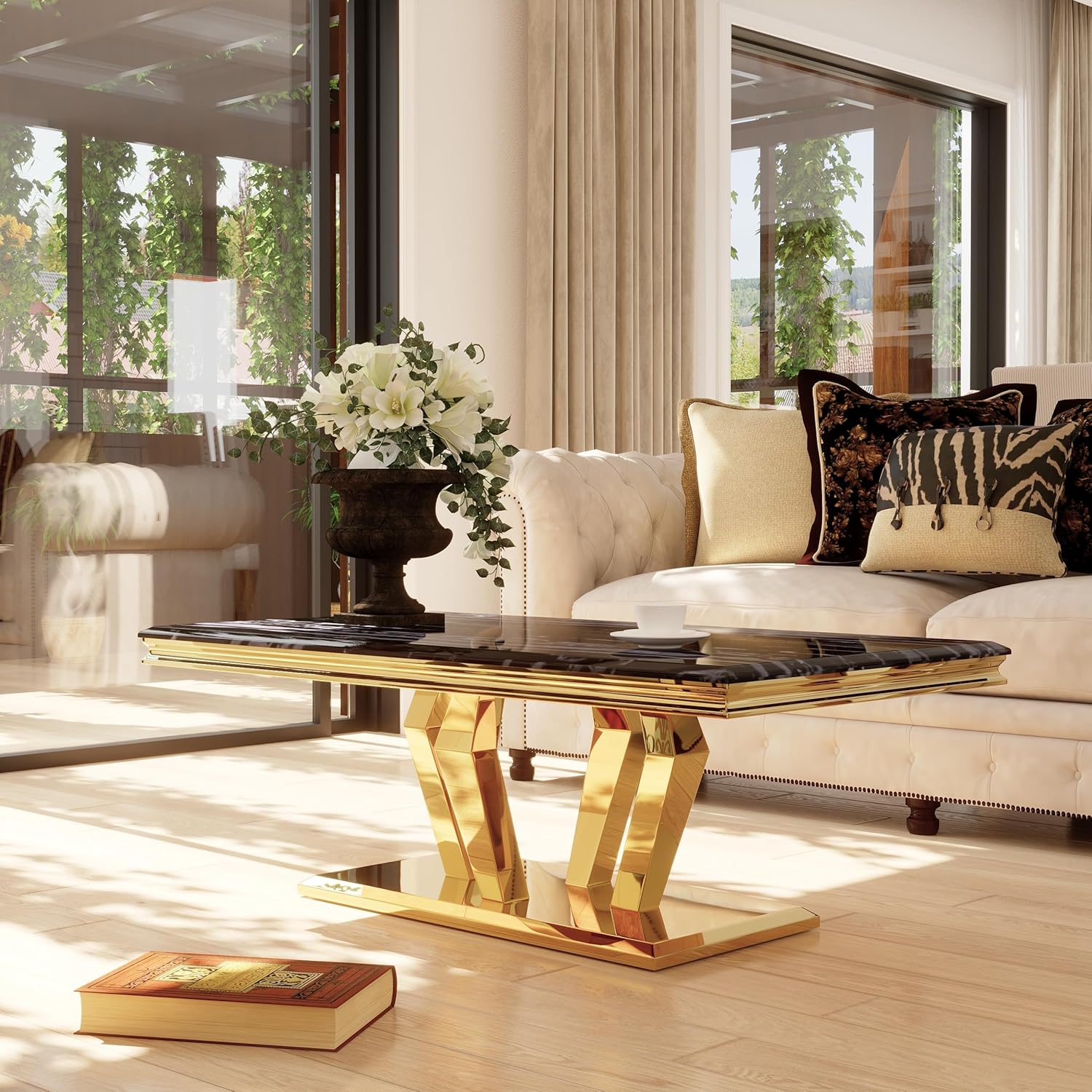 - The classic gold finish pairs effortlessly with any décor style, and the clean, minimal lines give the table a modern, elegant look suitable for both living rooms and offices.