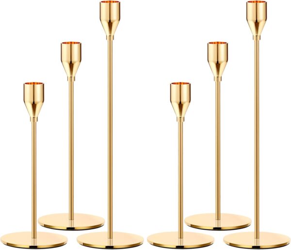Gold Taper Candle Holders Set of 6 Metal Wedding Table Decor