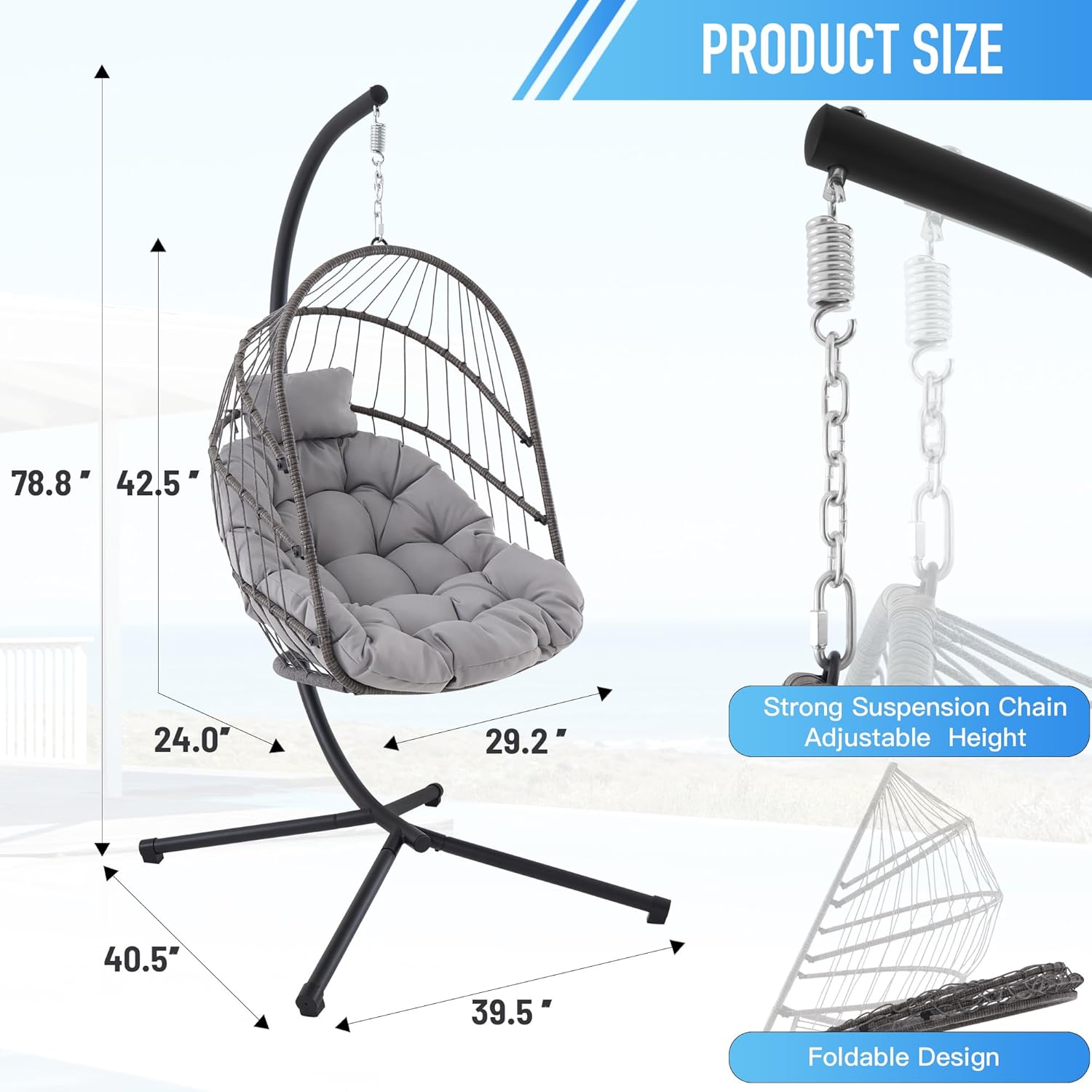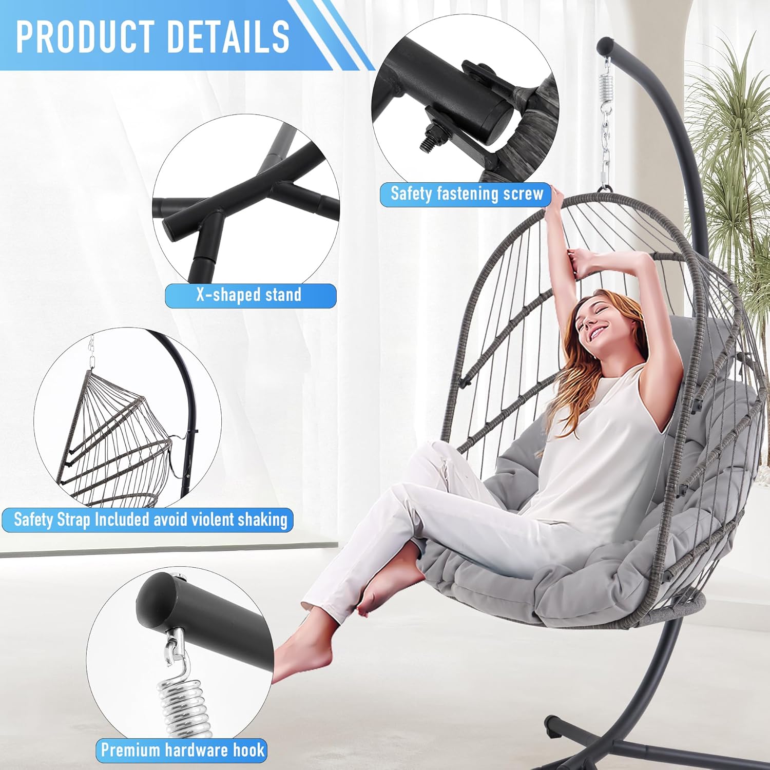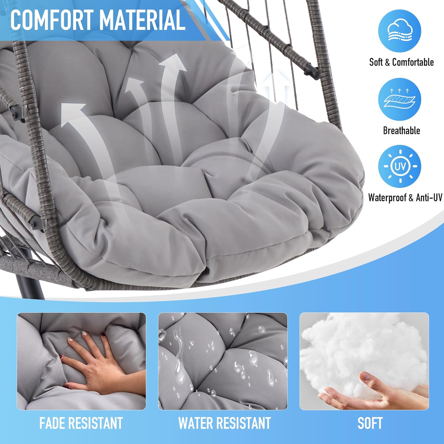 Hanging Egg Chair with Stand UV Resistant Cushion Indoor Outdoor