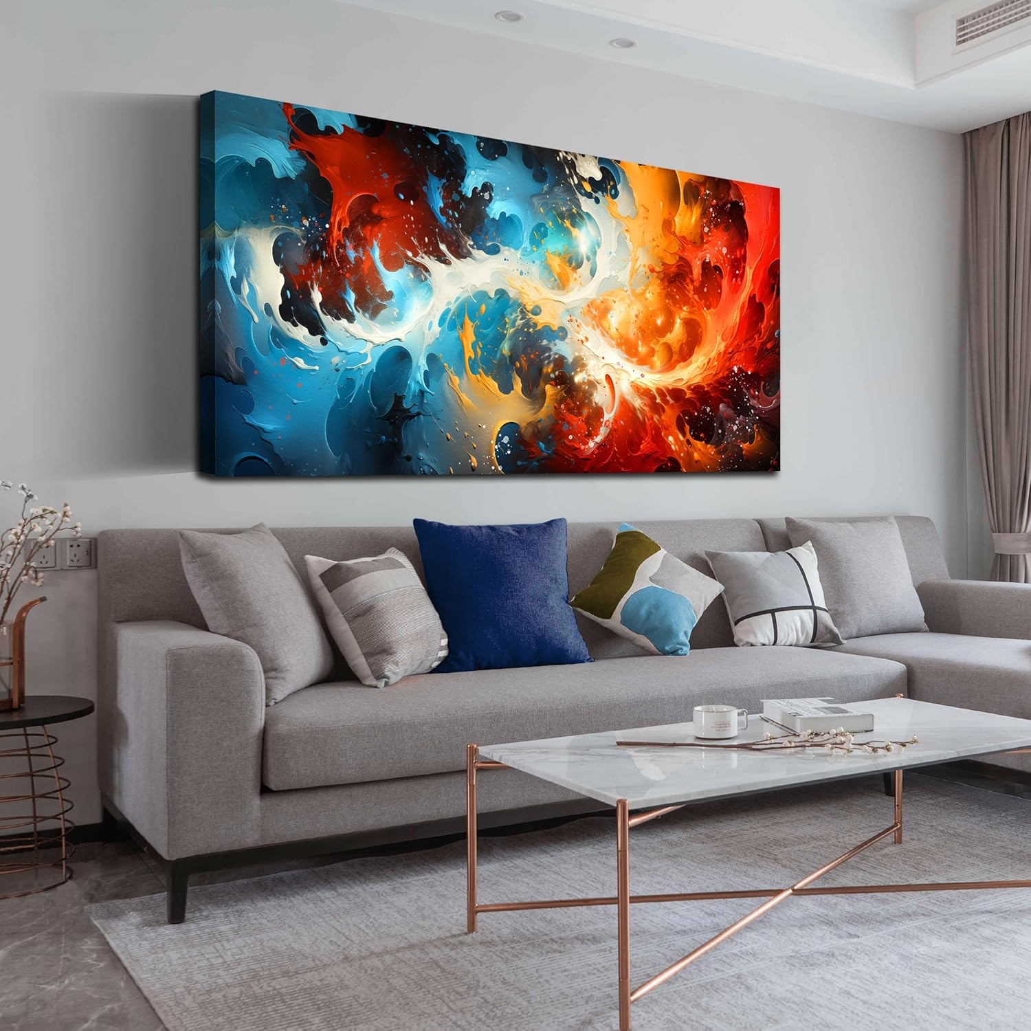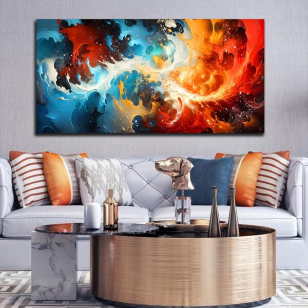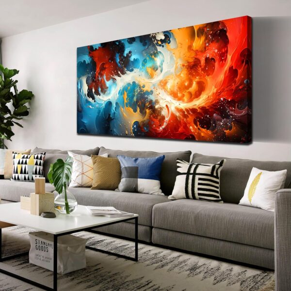 - Large canvas artwork with vibrant abstract design, creating a bold and modern focal point.