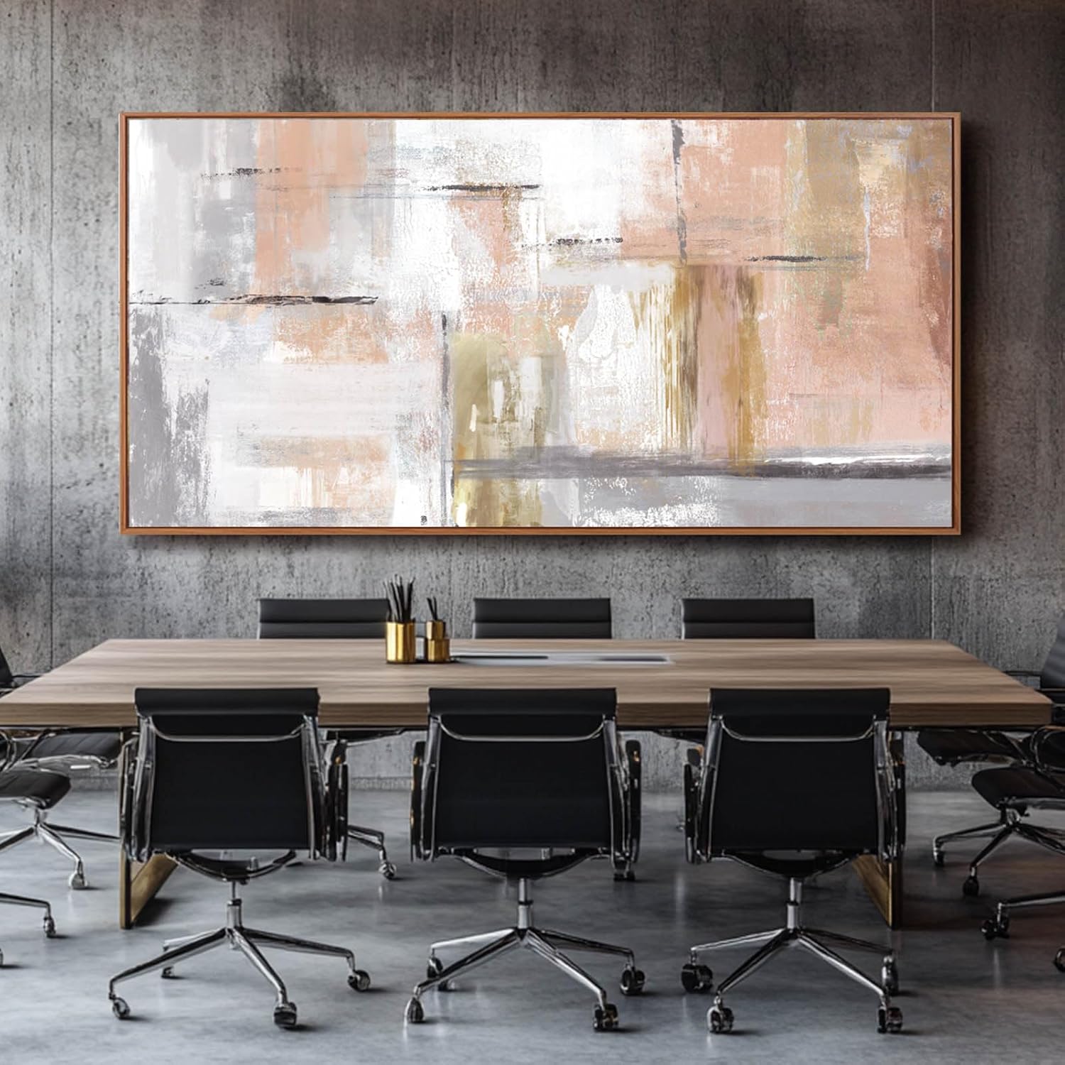 • Large canvas artwork in a bold abstract style, ideal for enhancing modern living spaces.