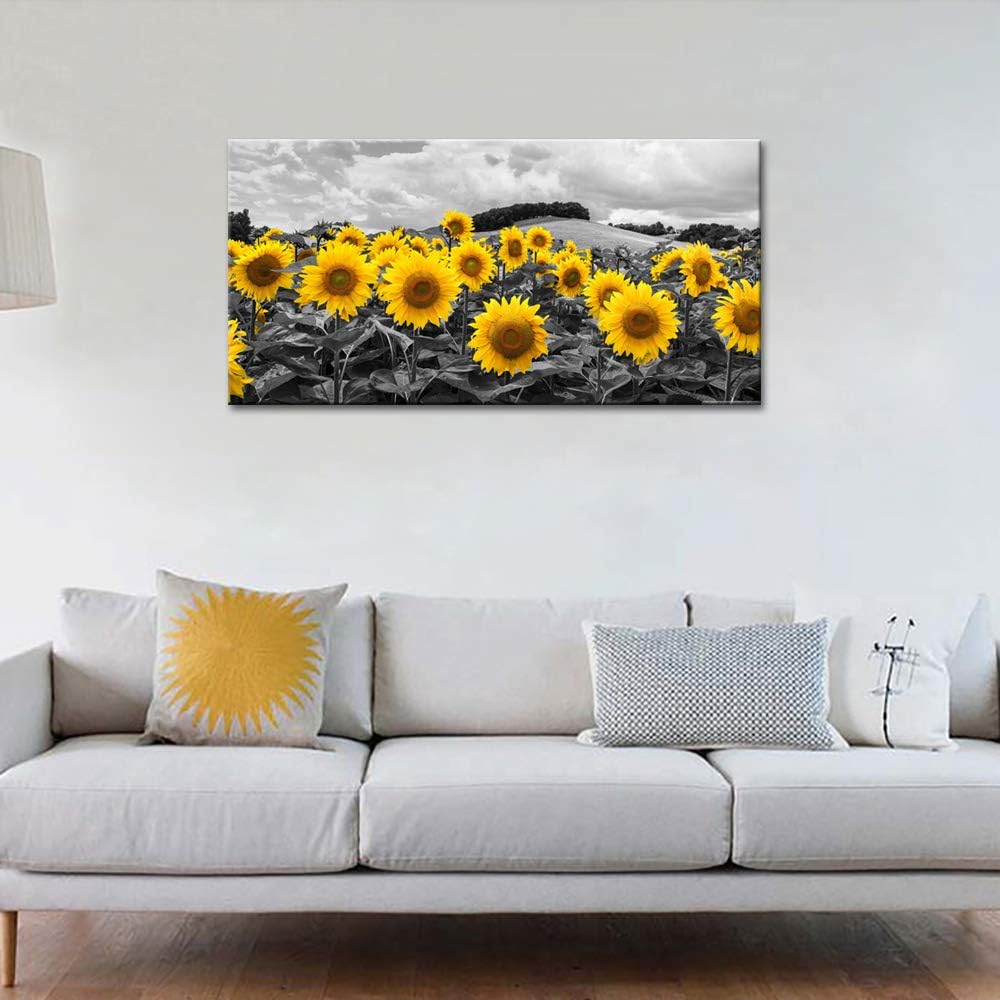 Large Sunflower Wall Art Canvas Black White Floral Modern Decor