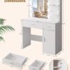 • Compact vanity desk design with multiple drawers, shelves, and a cabinet provides organized storage for cosmetics, accessories, and daily essentials.