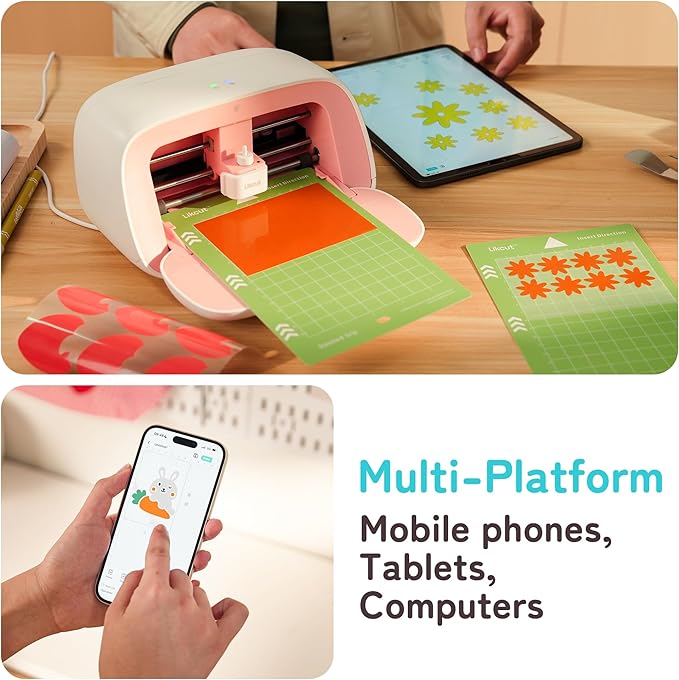 • Multiple Connectivity: Cutting made easy with Likcut S501 Cutter Machine! Enjoy seamless connections across mobile, tablet, and PC devices. Experience quick DIY projects wherever you are. Applicable to sticker craft, label print and vinyl cut