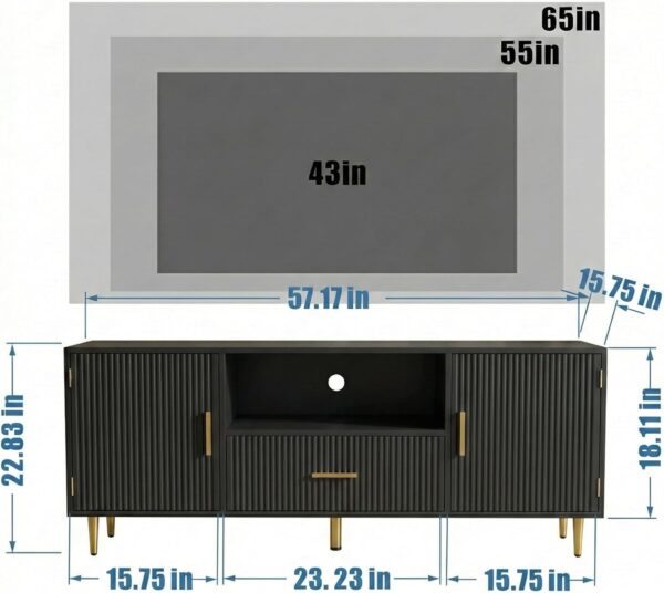 Be the first to review “Modern Fluted TV Stand 57 Inch Media Console Cabinet Black”