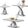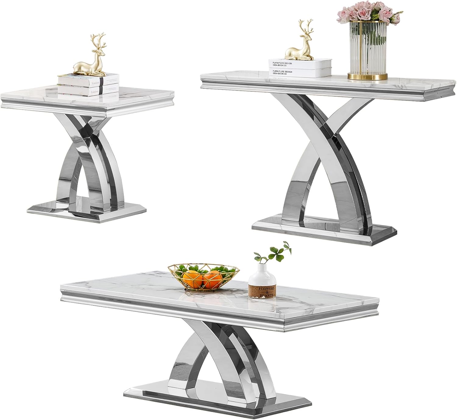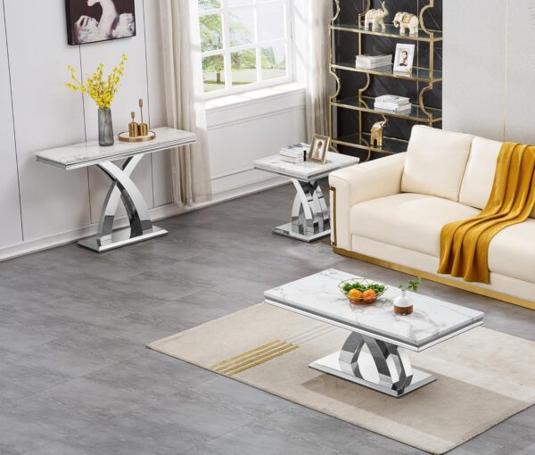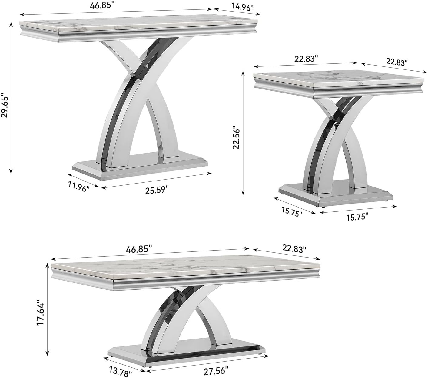 - Includes a coordinated 3-piece set with a coffee table, console table, and end table, combining style and functionality.