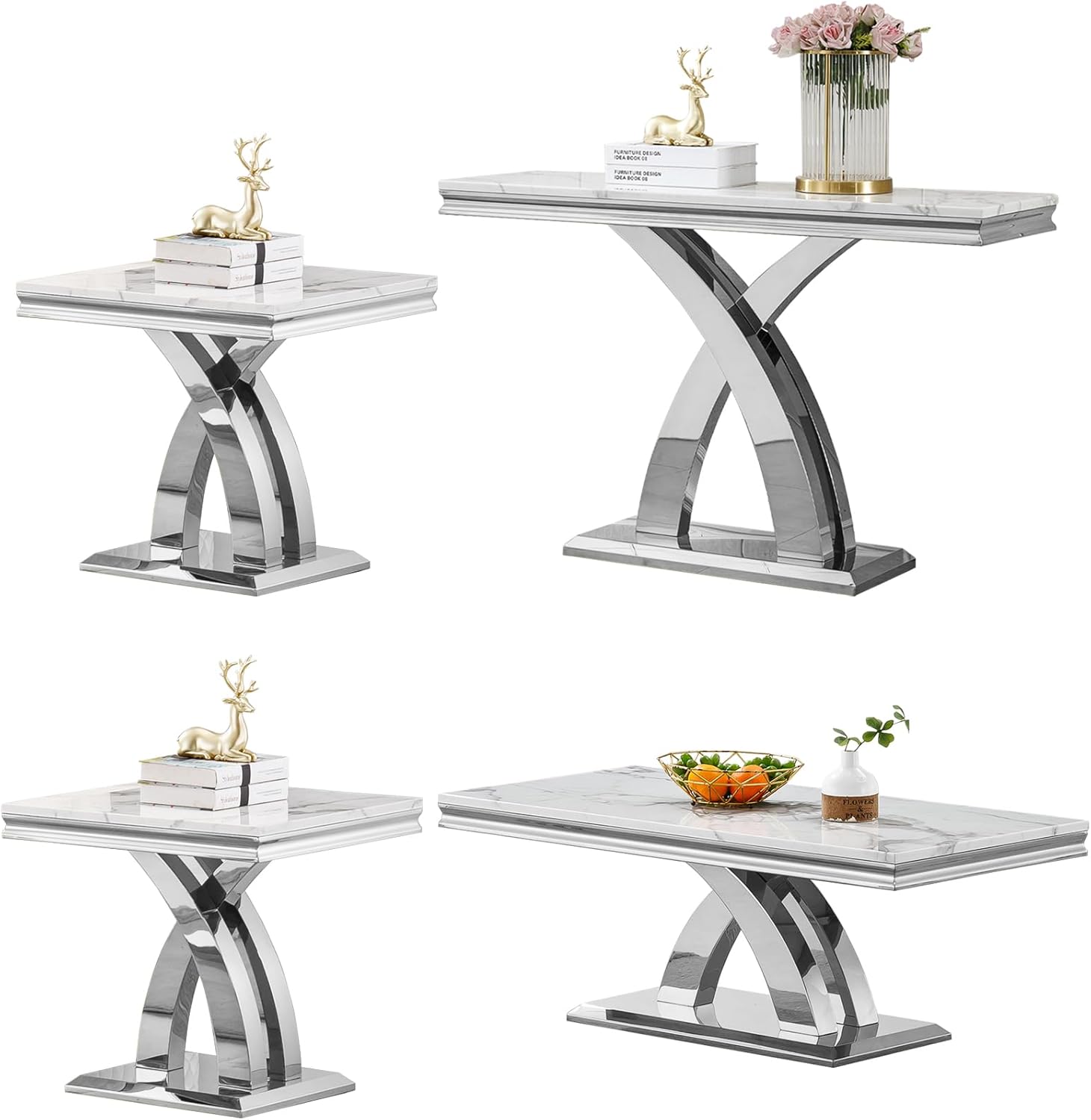 Modern Marble Coffee Table Set 4 Piece Living Room Tables