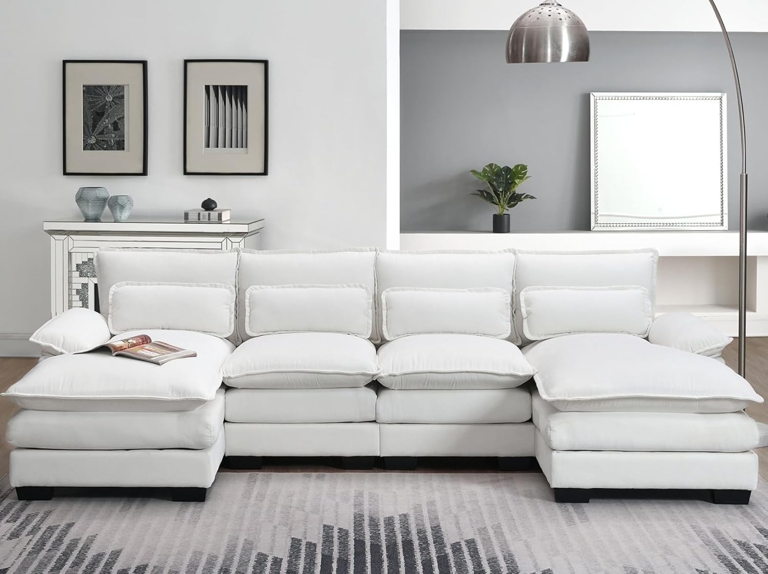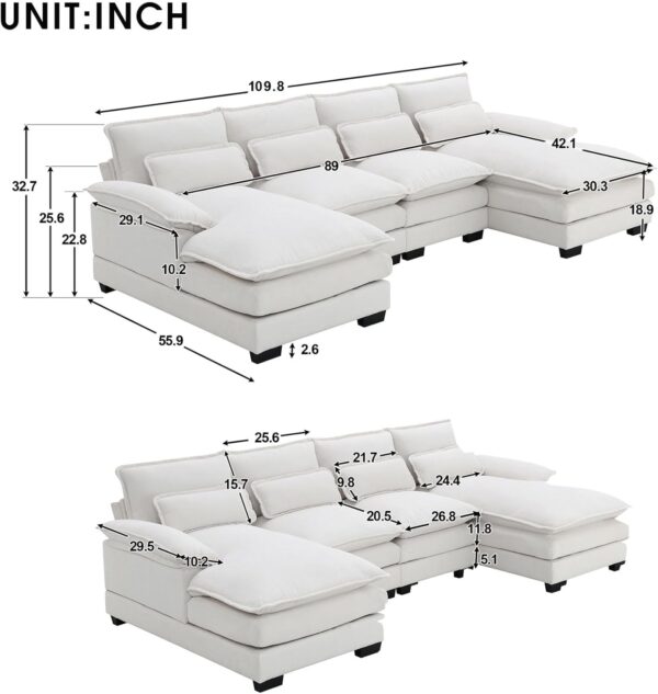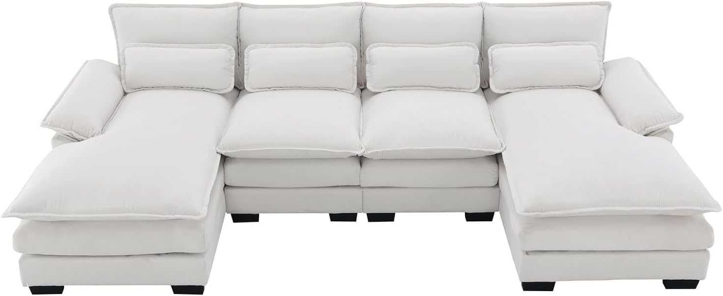 Modular Sectional Sofa Sleeper Couch with Chaise Pillows White