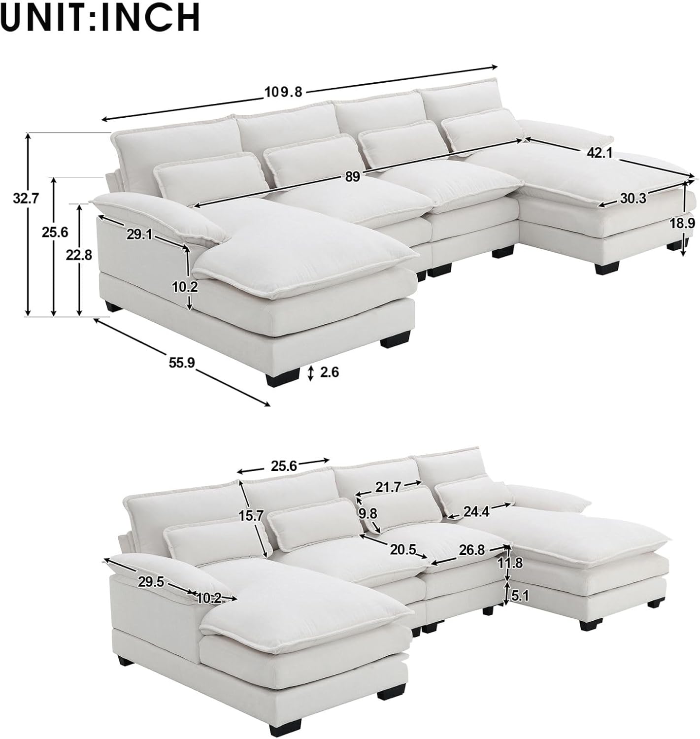 Be the first to review “Modular Sectional Sofa Sleeper Couch with Chaise Pillows White”