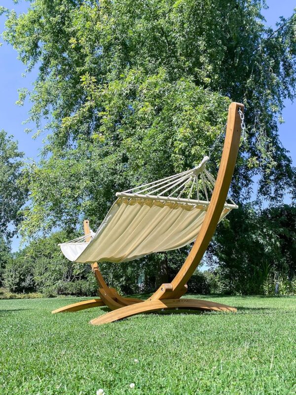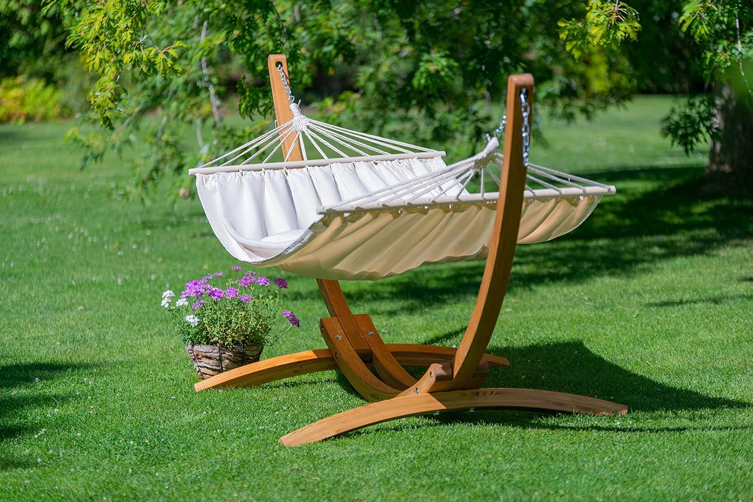 - Designed with a sturdy wooden stand and spacious dimensions, supporting a stable and secure lounging experience.