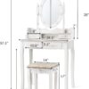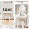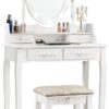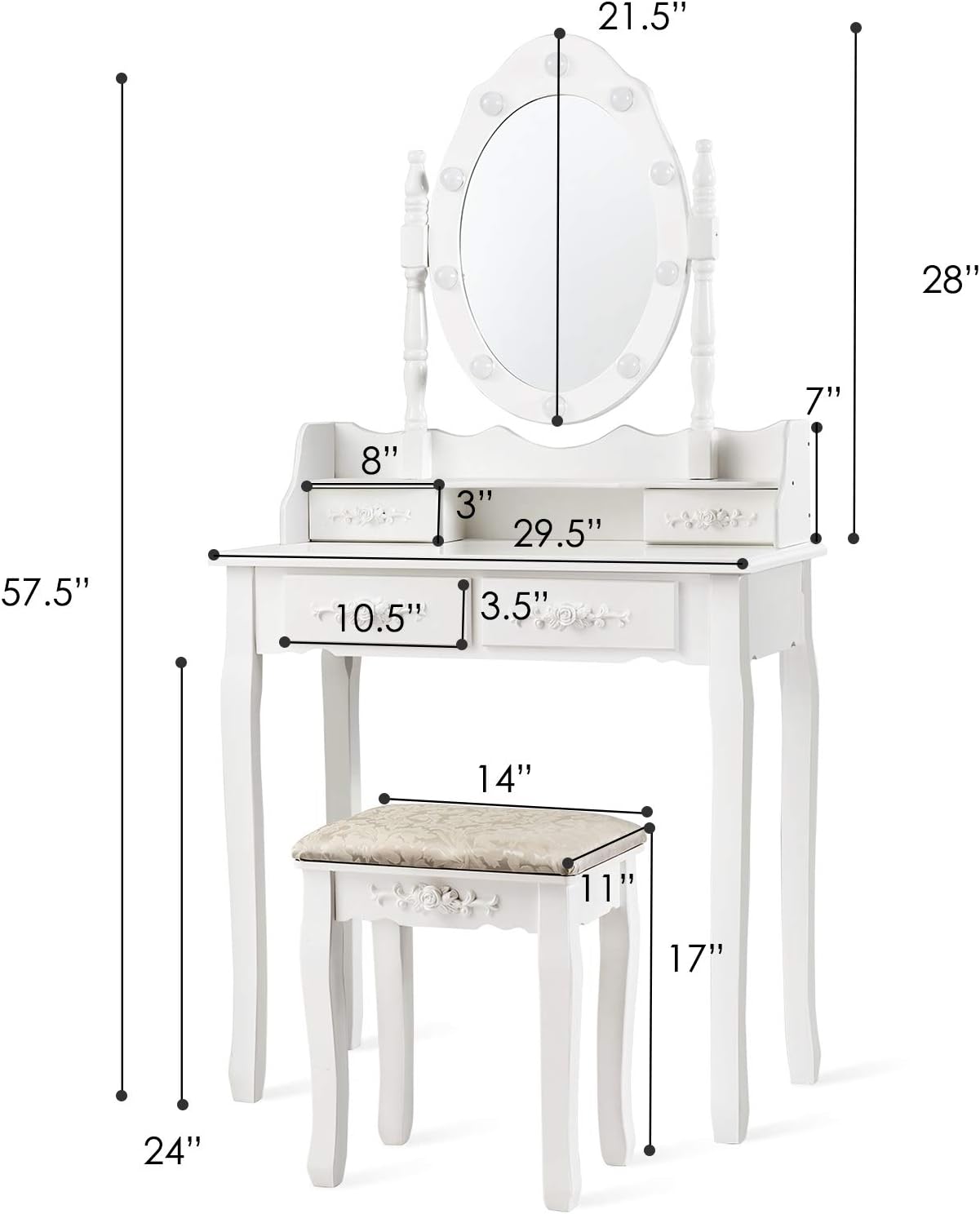 • Offers ample storage with multiple drawers and shelves, keeping cosmetics and essentials neatly organized on a spacious tabletop.