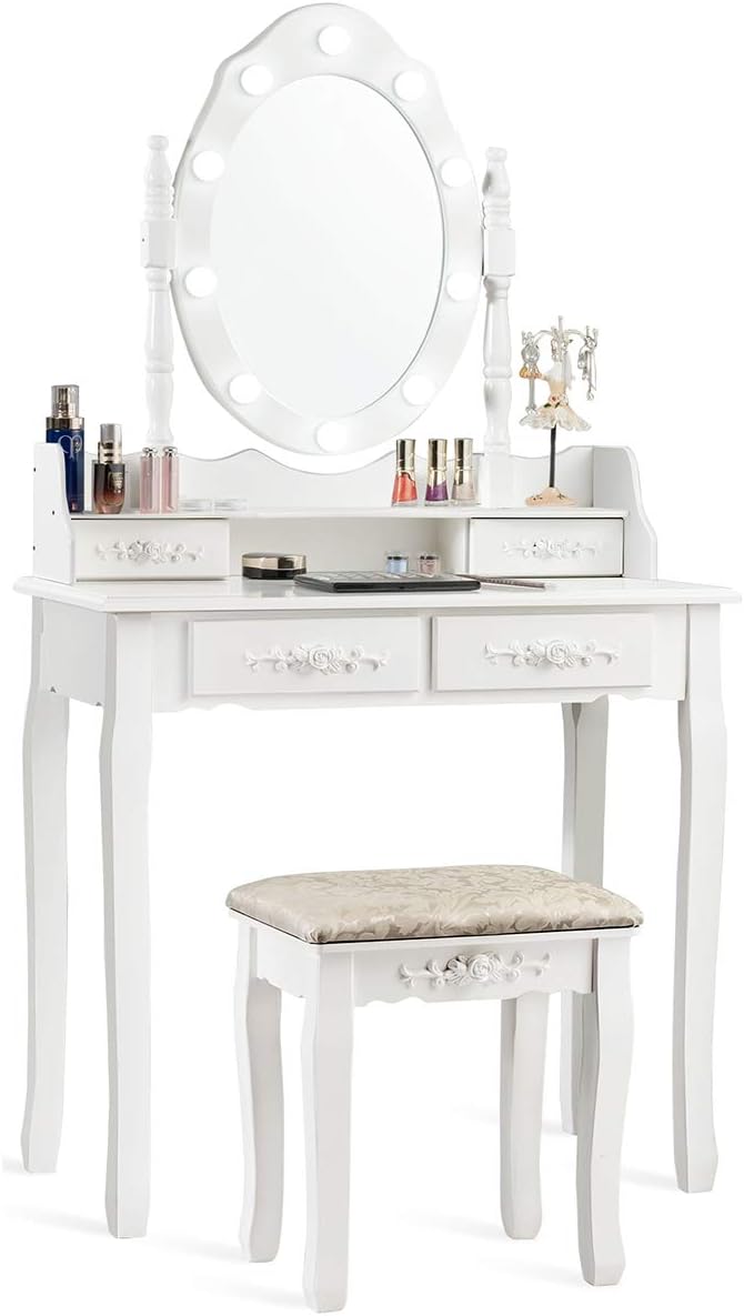 • Features a high-definition mirror with adjustable angles and surrounding LED lights for clear, customizable illumination during makeup application.