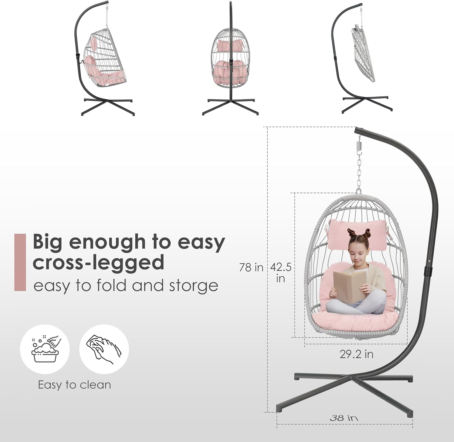 - Complete set includes chair, stand, cushion, pillow, and accessories, providing everything needed for immediate use.