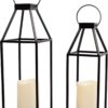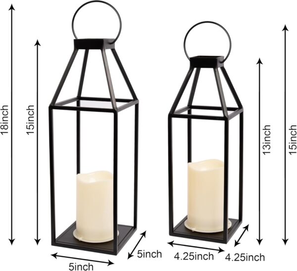 - Two sizes that create a natural staggered display — The 18-inch and 15-inch lanterns are proportioned to work as a natural pair — stepped on a porch, flanking a front door, lining a garden path, or anchoring a dining table centerpiece. The size difference creates immediate visual depth without any additional styling effort.