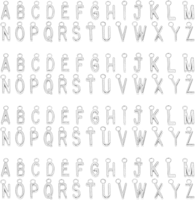 • 26 A-Z alphabet letters, 4pcs of each letter, total is 104pcs. Each letter has holes that allows to make individual bracelet or necklace.