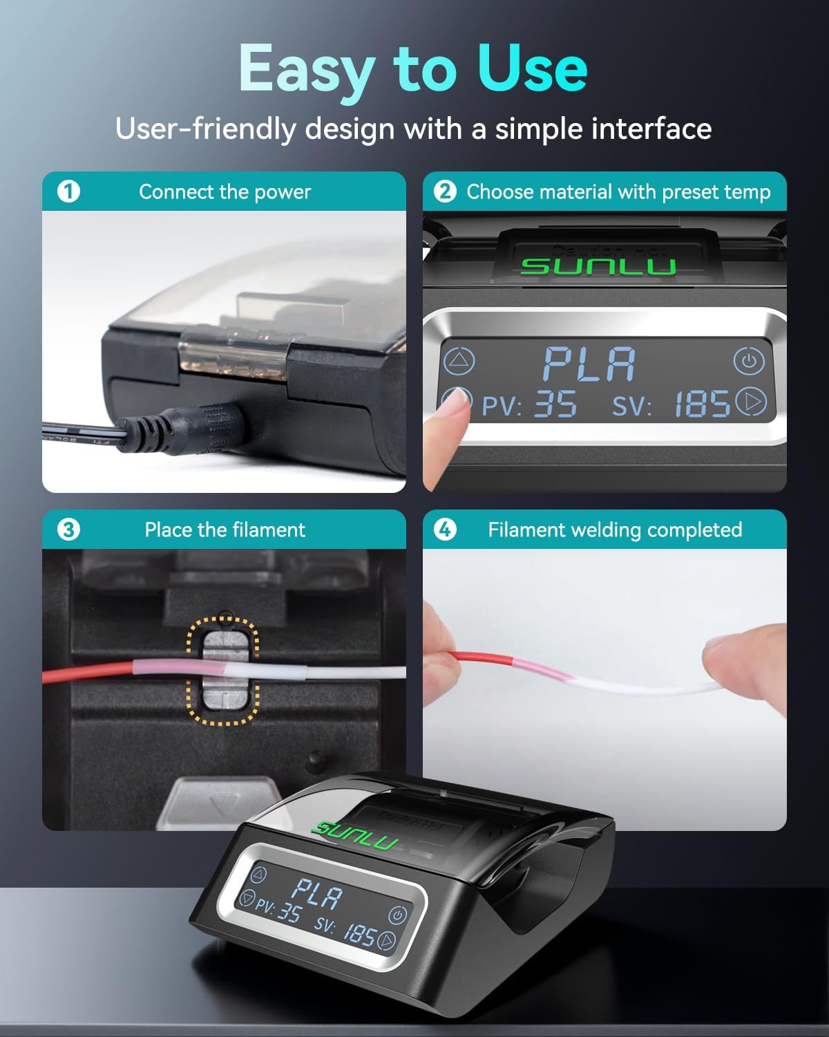 • Turn into Value: SUNLU Filament Connector can fuse the remaining filament on the spool, maximizing the use of each roll of 3D filament and reducing waste