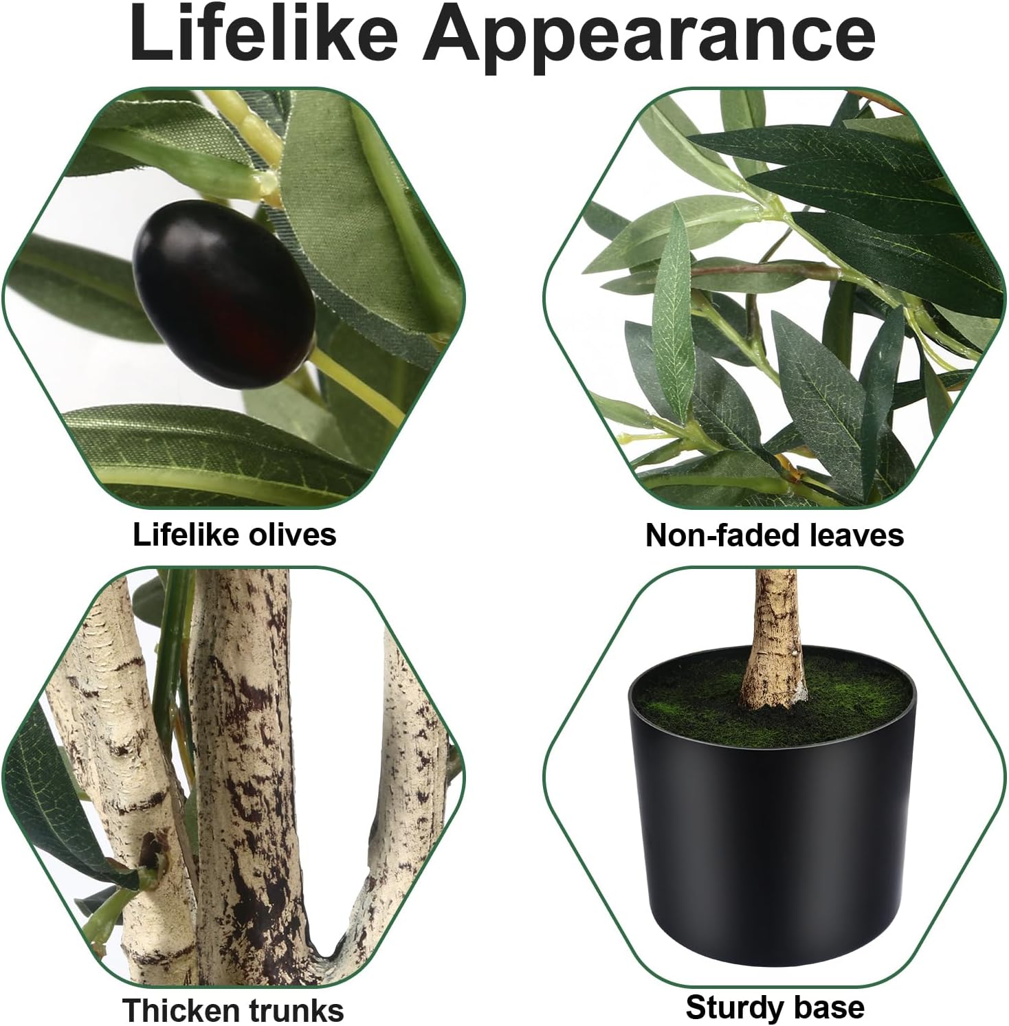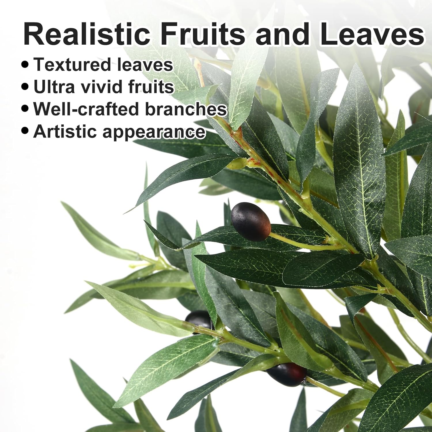 - Lifelike fruits and realistic leaf detail that hold up to a closer look — The olive fruits and leaf texture are crafted to replicate the real thing at close range, not just from across the room. The color variation between leaves, the natural droop of the branches, and the fruit clusters all contribute to a finished plant that reads as genuine.