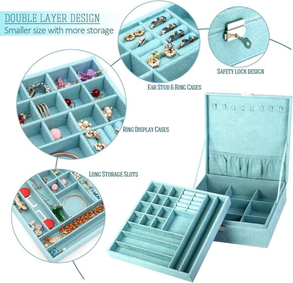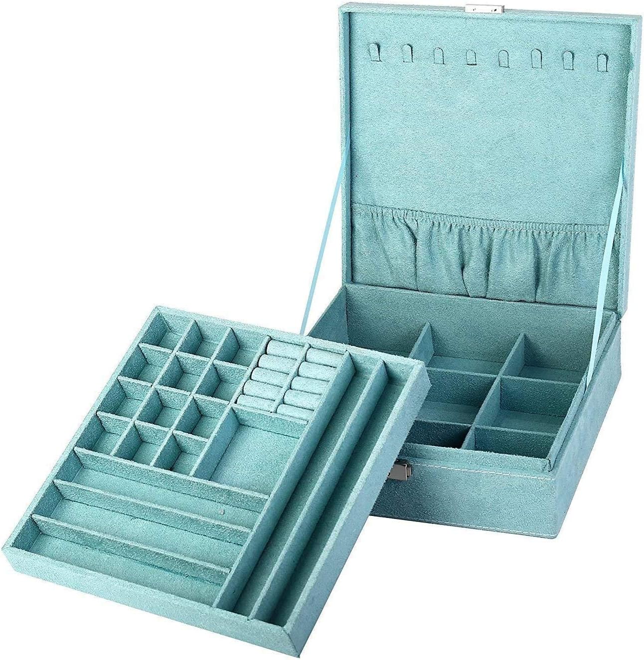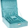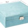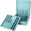 - Two removable layers that double the storage without doubling the footprint — Both trays lift out independently, giving you two fully usable storage surfaces in a box that takes up only 10.2 by 10.2 inches of dresser or nightstand space. Rings and studs on one layer, bracelets and longer necklaces on the other — everything organized and immediately visible without digging.