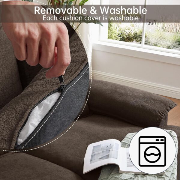 - Upholstered in soft microfiber fabric with removable covers, offering a cozy feel while being easy to clean and maintain.