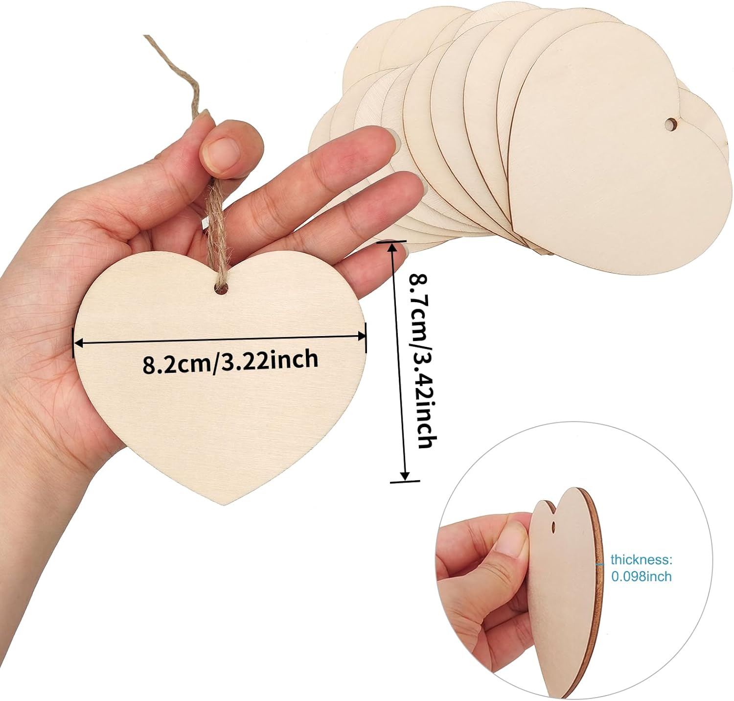 - Goes beyond Valentine’s Day — Unpainted wood hearts are year-round craft staples. Write names for place cards at a wedding, paint them as gift tags, use them as bookmarks, or add them to a wreath. The natural wood tone is seasonal-neutral — the occasion is whatever you decide it is.