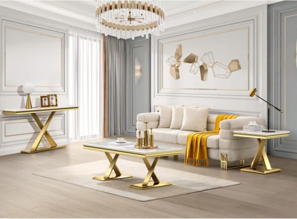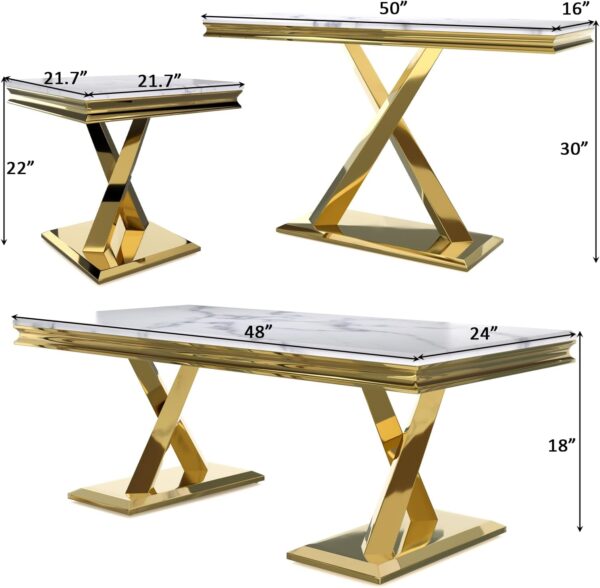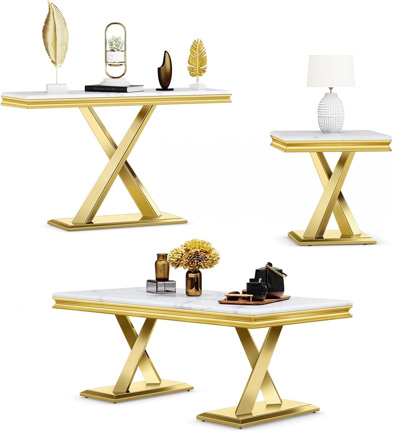 - Includes a complete 3-piece set with coffee, console, and end tables sized for everyday use.
