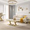- Crafted with a high-gloss faux marble tabletop and sturdy metal frame for durability and elegance.