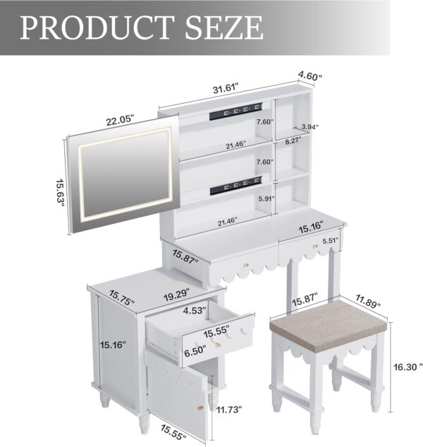 Be the first to review “White Makeup Vanity Desk with Lighted Mirror Storage Drawers Stool”